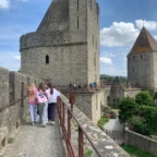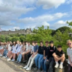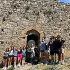 Today was an eventful day! We started by having a nice French breakfast at the hotel filled with croisants. We began our activities with a bus ride through the French country side. When we got close to Termes the bus could not fit through the narrow roads, so we had a nice short walk into the town of only 45 people. We learned about the history of the Château de Termes, or the castle of Termes, and were ready for service work with everything from pickaxes to rakes. After a bit we toured the castle and got to see some friendly horses and donkeys. At that point it was time for lunch and we ate a picnic lunch in town. On the bus ride back we entertained ourselves with conversations about our French friends from Jean Courrière Middle School, crossword puzzles, and some sleep. We then got to visit the large fortress in Carcassonne completed with a guided tour, ice cream, and some time to shop.