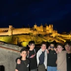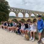 Today we started the day with packing up all our stuff and eating a delectable breaky at the hotel! After that we got ready to buy some things at a market in Avignon, but it was closed. 😞 Luckily we went to a grocery store instead! Then we got on our bus and trekked our way to Pont Du Guard, a Roman aqueduct. We got to have a wonderful picnic and view! At the end of our adventure we skipped stones in the river and caught a bunch of tiny fishies with our hands 🙌. Then we walked back to our bus and started our 3 hour drive to Carcassonne. We bonded on the bus by telling funny stories to each other to pass the time. Once we got to Carcassonne we went to the hotel to settle in. It’s really beautiful 😍. After about 30 minutes of chillin’ we made our way to la cité for dinner. We had some scrumptious pizzas and fun drinks. Shortly after getting our food we were interrupted by some unforeseen thunder storms 😱⚡️!!!!! Luckily it passed quickly and we were able to get on the bus to go bowling with our host families. We had so much fun bowling and getting to speak some French to native French speakers. Today we had SO much fun and now we’re arriving at the hotel ready for some much deserved sleep!!!!