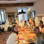 Following a short time at the hotel we were picked up by our host families were for the rest of the night we did everything from playing soccer, competing in french board games, exploring ceramics creation, having fun with karaoke, and of course eating a nice French dinner. Those were filled with tartiflette, potatoes, varying cheeses and of course delicious crepes. Today was a very fun day filled with adventure and lots of surprises.