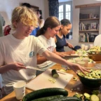 Today was AMAZINGGGGGG!😃 In the morning we had some delicious pain au chocolat à l’hôtel. Then, we went to the palace of the pope and learned all about the history of the popes that lived in Avignon. Everyone took pretty pictures of the palace and the view. After the visit, we had a lunch picnic in a garden and watched the local pigeons. 🦆🦜🐥🐣🦢🐓🦃🦉🐧🐤🐦🪹🦤🪶🐦⬛🦩🧺 . We then drove to a light show museum in a cave with really cool art. After, we went to an outdoor mediaeval castle site that had beautiful views! Near the site, many people bought nice gifts for their families in the shops. After, we took the bus to a small town for our cooking class. There we met a super nice couple who helped us make ratatouille. We chopped vegetables, made chocolate covered cherries, ate cheese and charcuterie and made yummy mocktails!