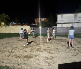 While at the beach, some people enjoyed the sun, while others had fun playing games, volleyball, dug a big hole, and tried gymnastics. After the beach we got ready for our big community dinner. As we were waiting we played 2v3 basketball, and we won! For dinner we had a plate of rice, chicken, rolls, salad, and casitas. We played a game of infection (tag combined with hide and seek) with some of the family members of the house and construction workers. We played a heated game of volleyball against guys versus girls, including everyone. After we all sat up at the table Angel informed us that we used 90 bags of cement which they’ve never seen in all 22 years they’ve worked!!! He also said that other groups have been good, but we are perfect!!! We all took a picture and said our goodbyes, which was very bittersweet. To finish the night we are hanging out and playing games before we go to sleep.