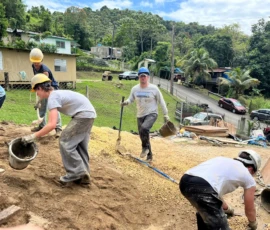 We began day three in Puerto Rico at 6am. We had a small group of people who got up with us to go watch the sunrise. On the beach we ran up and down for a while and then looked for sea shells. We came back to the big yellow house and played basketball for a while until breakfast came, we had a great breakfast and got on the bus to head to the work sight.