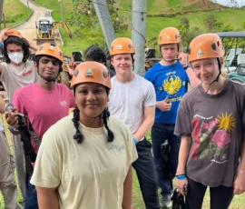 Today, we woke up to eggs and pancakes for breakfast. It was scrumptious. Next, after getting ready, we piled into the bus and went on an hour long ride to zip lining. The road was windy and felt like Transylvania, but we enjoyed each other’s company. After arriving, we were all very happy because the views were fantastic. We suited up and got ready to take flight.