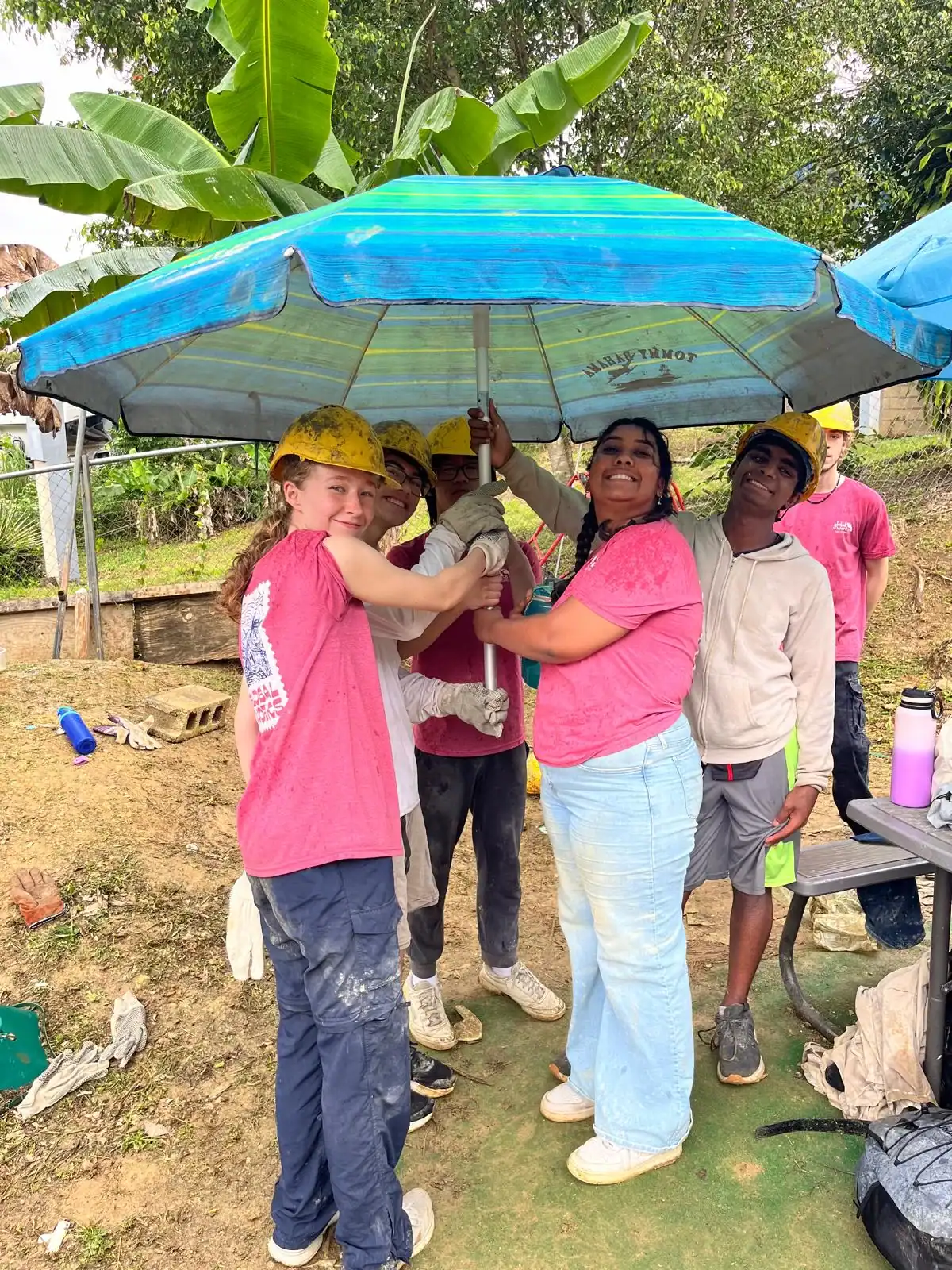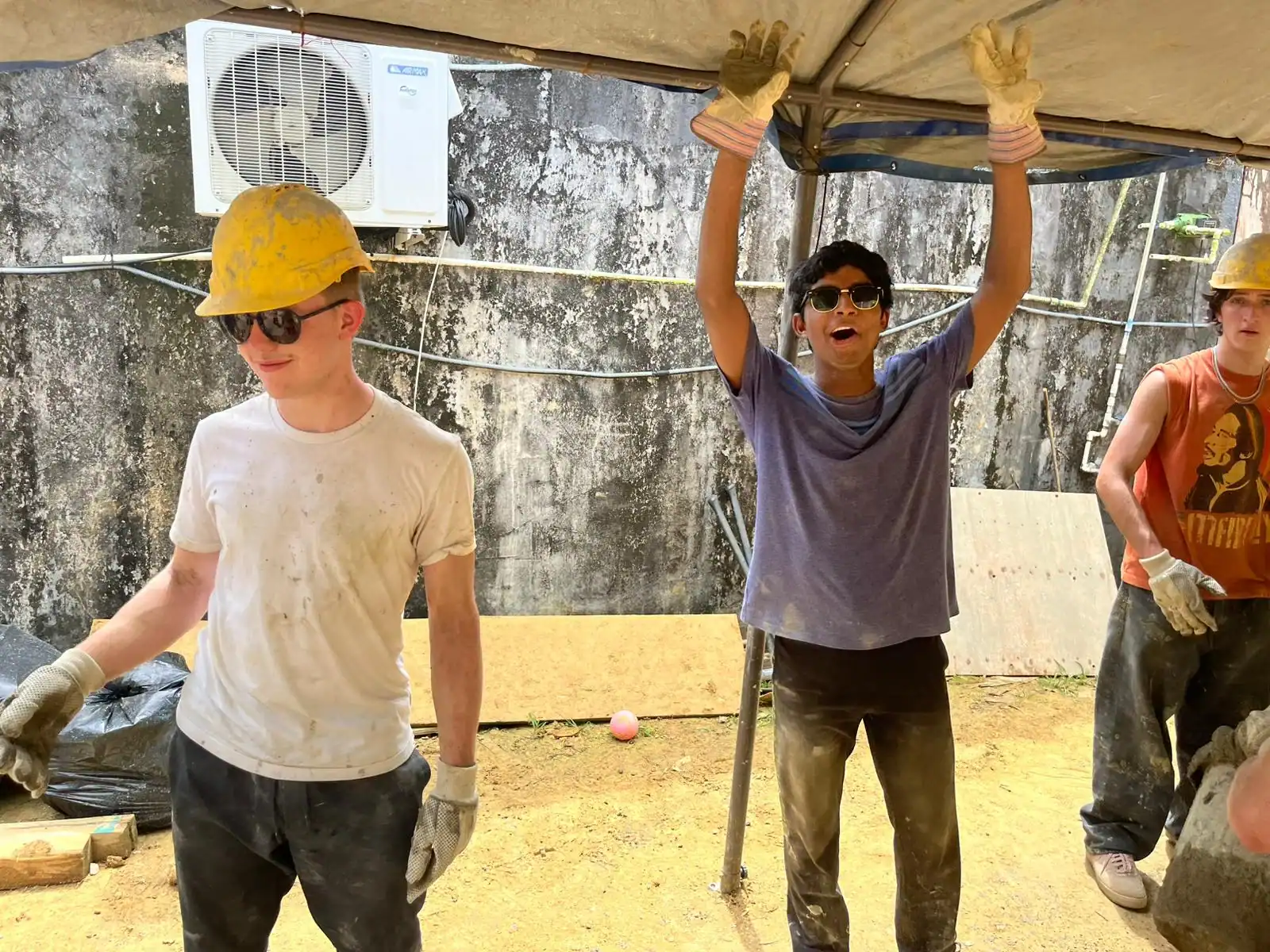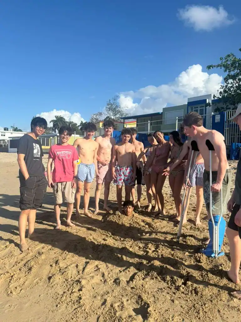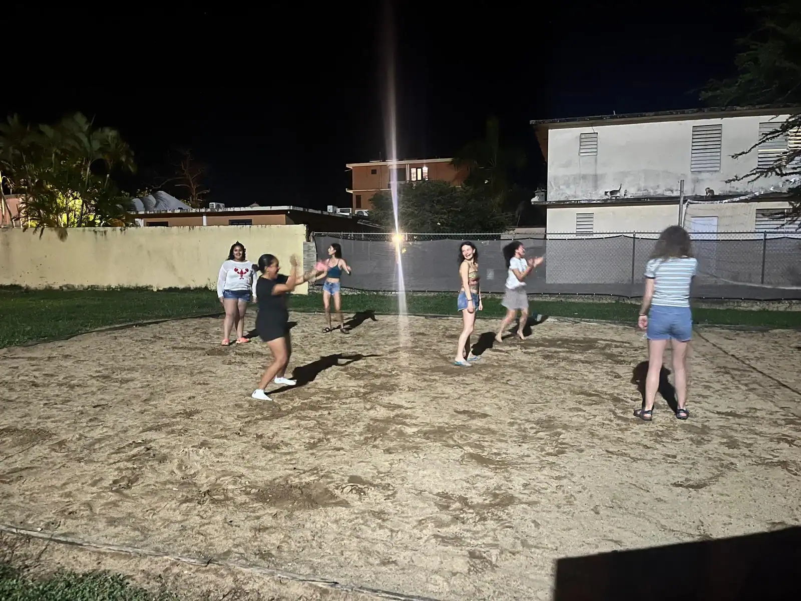 While at the beach, some people enjoyed the sun, while others had fun playing games, volleyball, dug a big hole, and tried gymnastics. After the beach we got ready for our big community dinner. As we were waiting we played 2v3 basketball, and we won! For dinner we had a plate of rice, chicken, rolls, salad, and casitas. We played a game of infection (tag combined with hide and seek) with some of the family members of the house and construction workers. We played a heated game of volleyball against guys versus girls, including everyone. After we all sat up at the table Angel informed us that we used 90 bags of cement which they’ve never seen in all 22 years they’ve worked!!! He also said that other groups have been good, but we are perfect!!! We all took a picture and said our goodbyes, which was very bittersweet. To finish the night we are hanging out and playing games before we go to sleep.