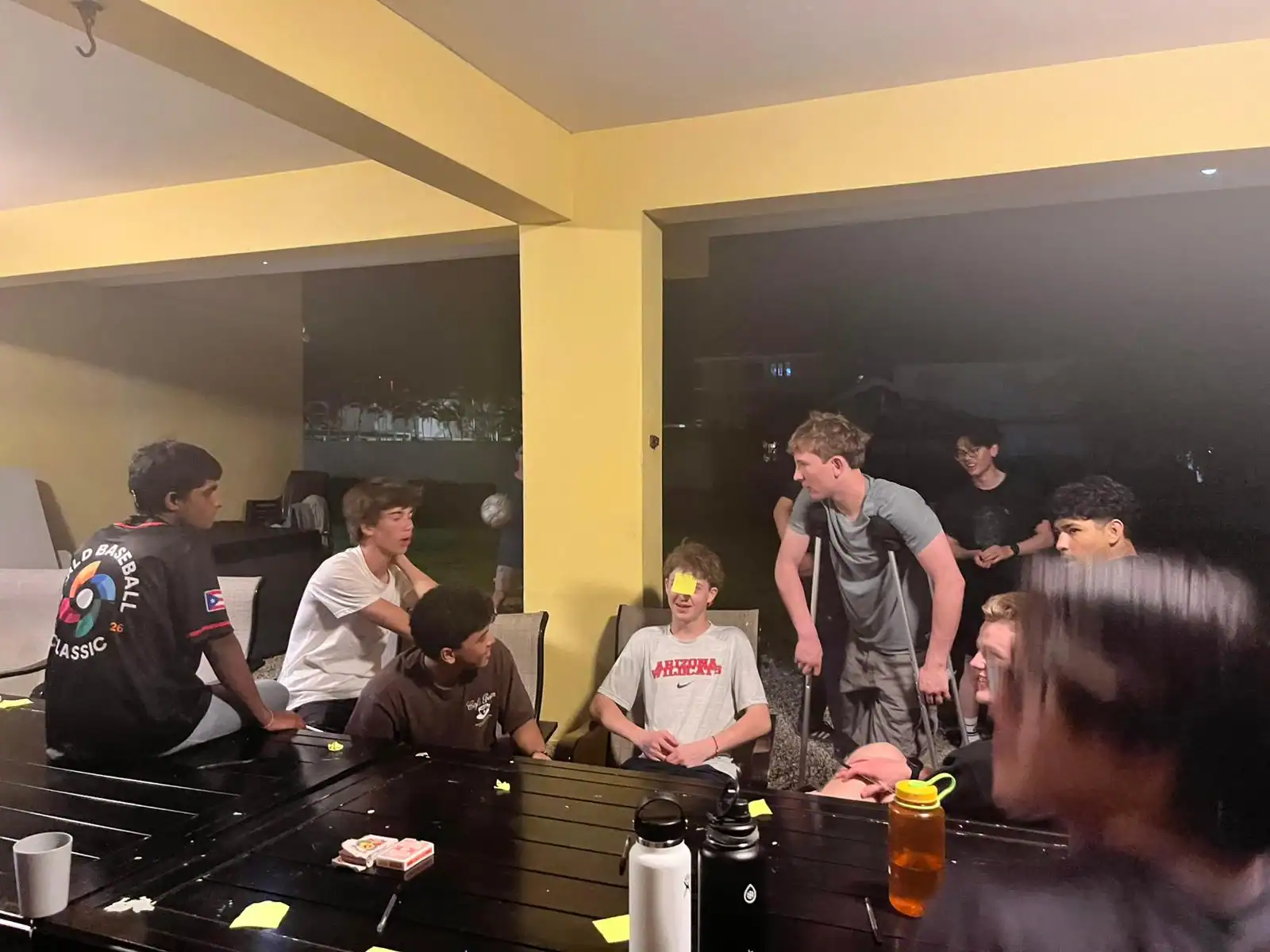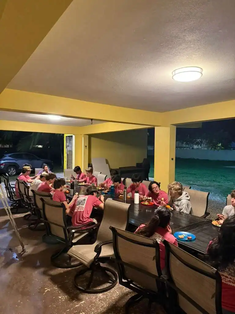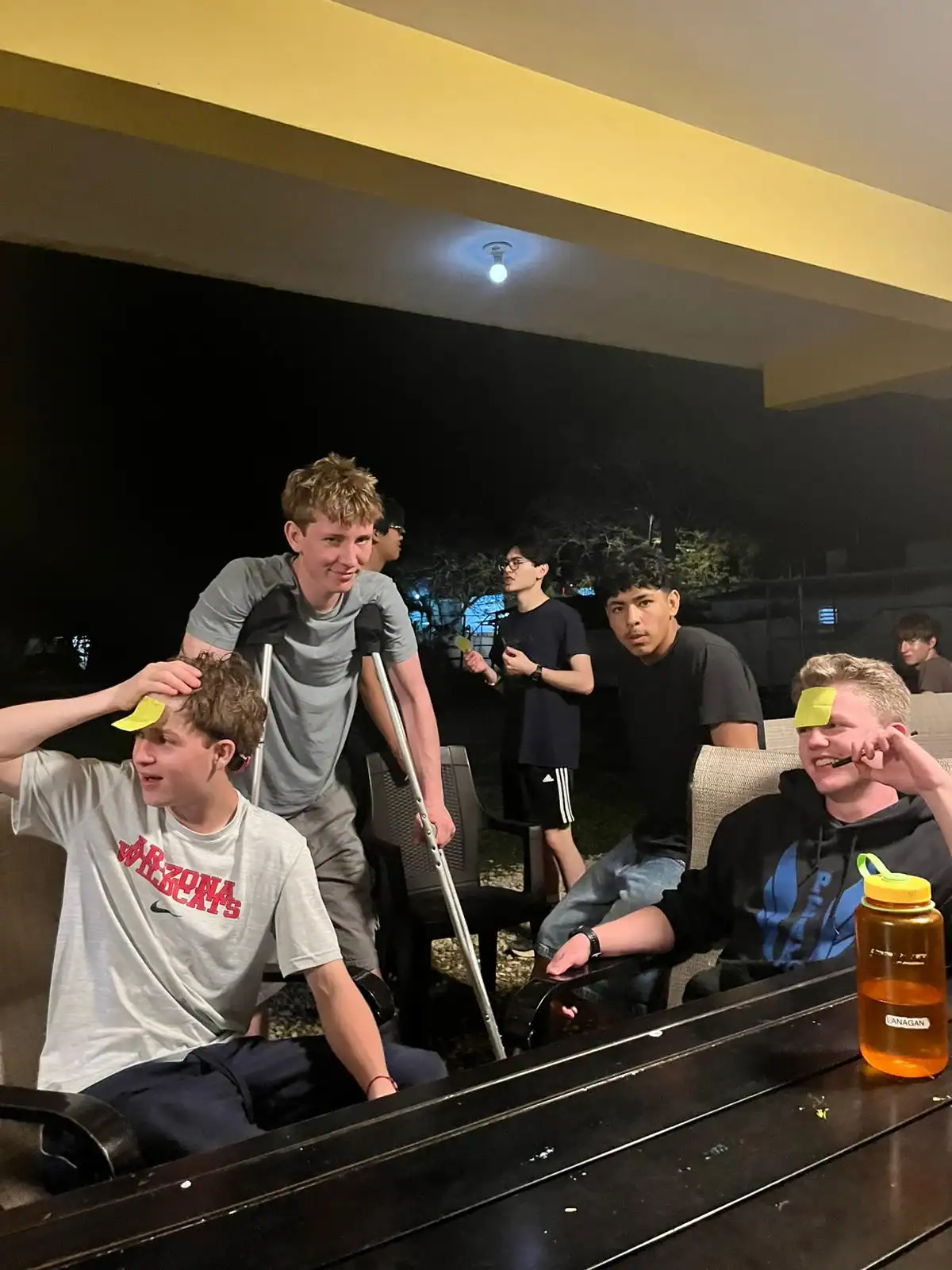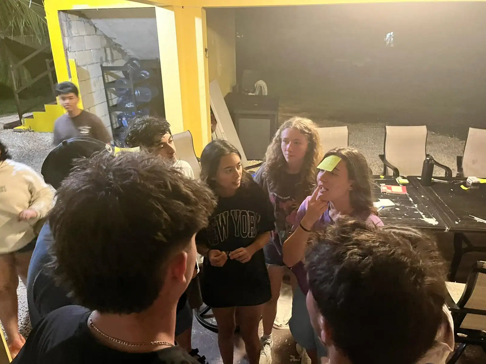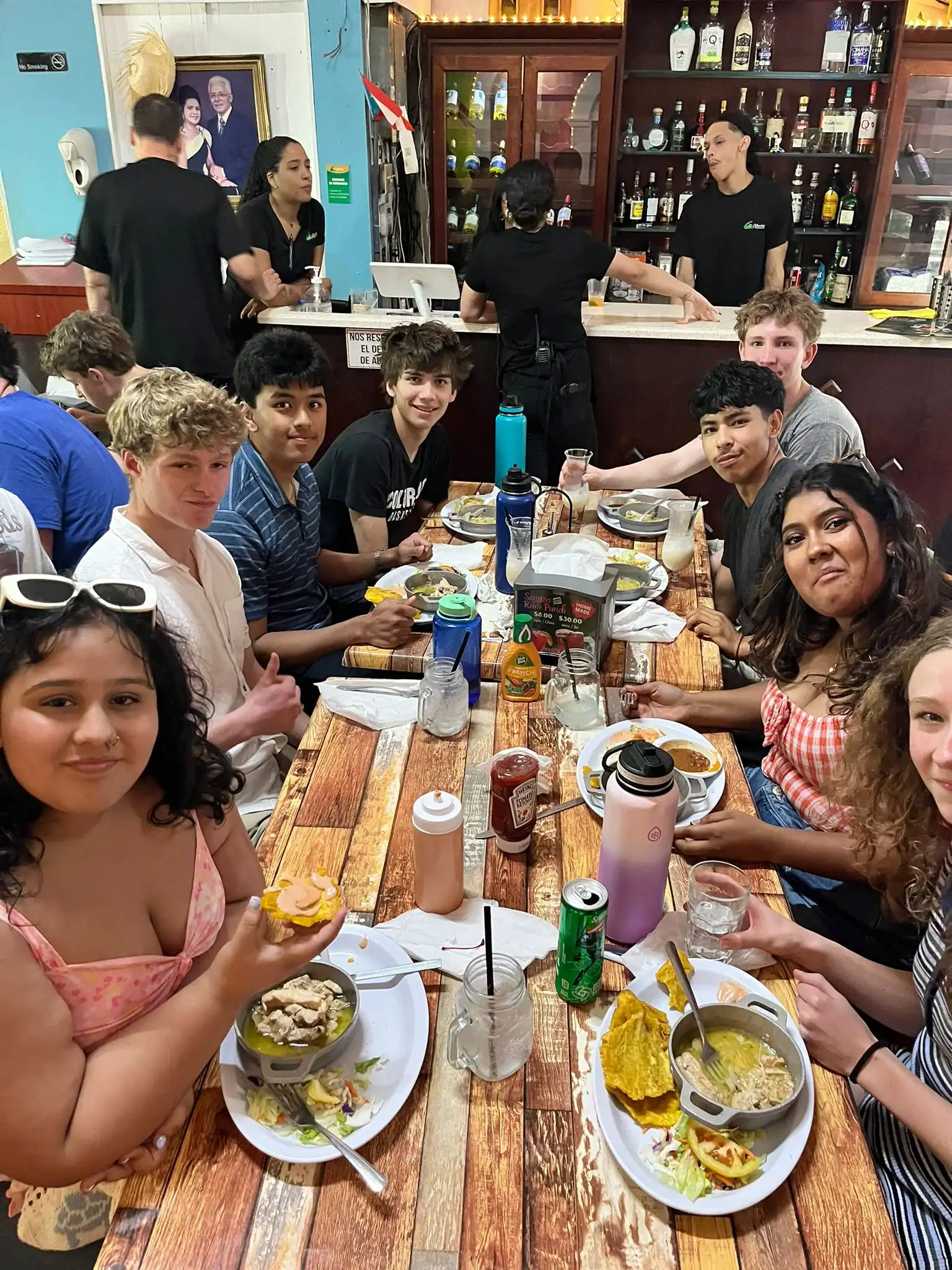While at the beach, some people enjoyed the sun, while others had fun playing games, volleyball, dug a big hole, and tried gymnastics. After the beach we got ready for our big community dinner. As we were waiting we played 2v3 basketball, and we won! For dinner we had a plate of rice, chicken, rolls, salad, and casitas. We played a game of infection (tag combined with hide and seek) with some of the family members of the house and construction workers. We played a heated game of volleyball against guys versus girls, including everyone. After we all sat up at the table Angel informed us that we used 90 bags of cement which they’ve never seen in all 22 years they’ve worked!!! He also said that other groups have been good, but we are perfect!!! We all took a picture and said our goodbyes, which was very bittersweet. To finish the night we are hanging out and playing games before we go to sleep.