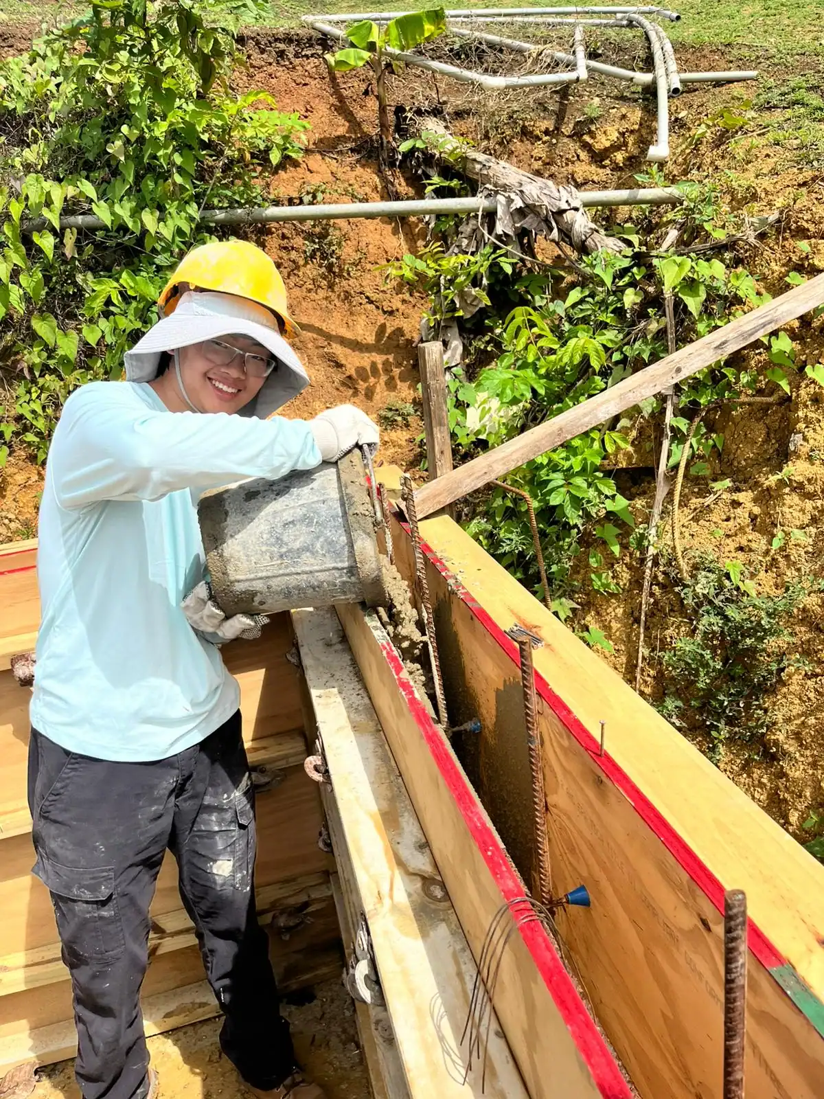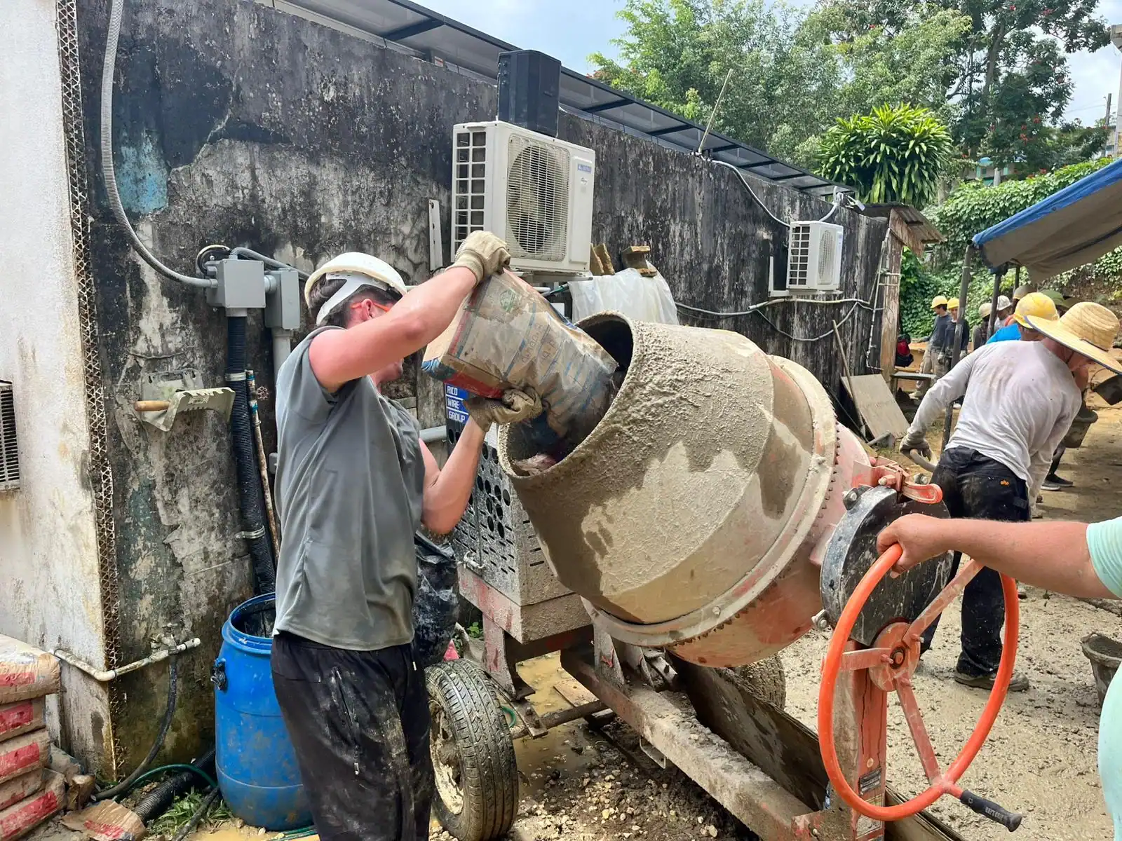 We woke up this morning to the rain, we made coffees and stuck it in the fridge to get cold, then went to the beach to watch the sunrise. We had a nice stroll through the beach for about an hour while admiring a rainbow before we headed back. Breakfast was served, which was waffles, ham eggs, and fruit. On the side, we enjoyed some iced coffee to get our day started. Then we were ready to start our very last day building.