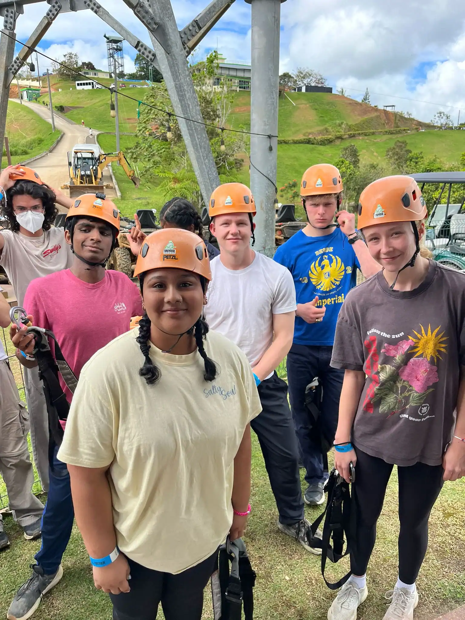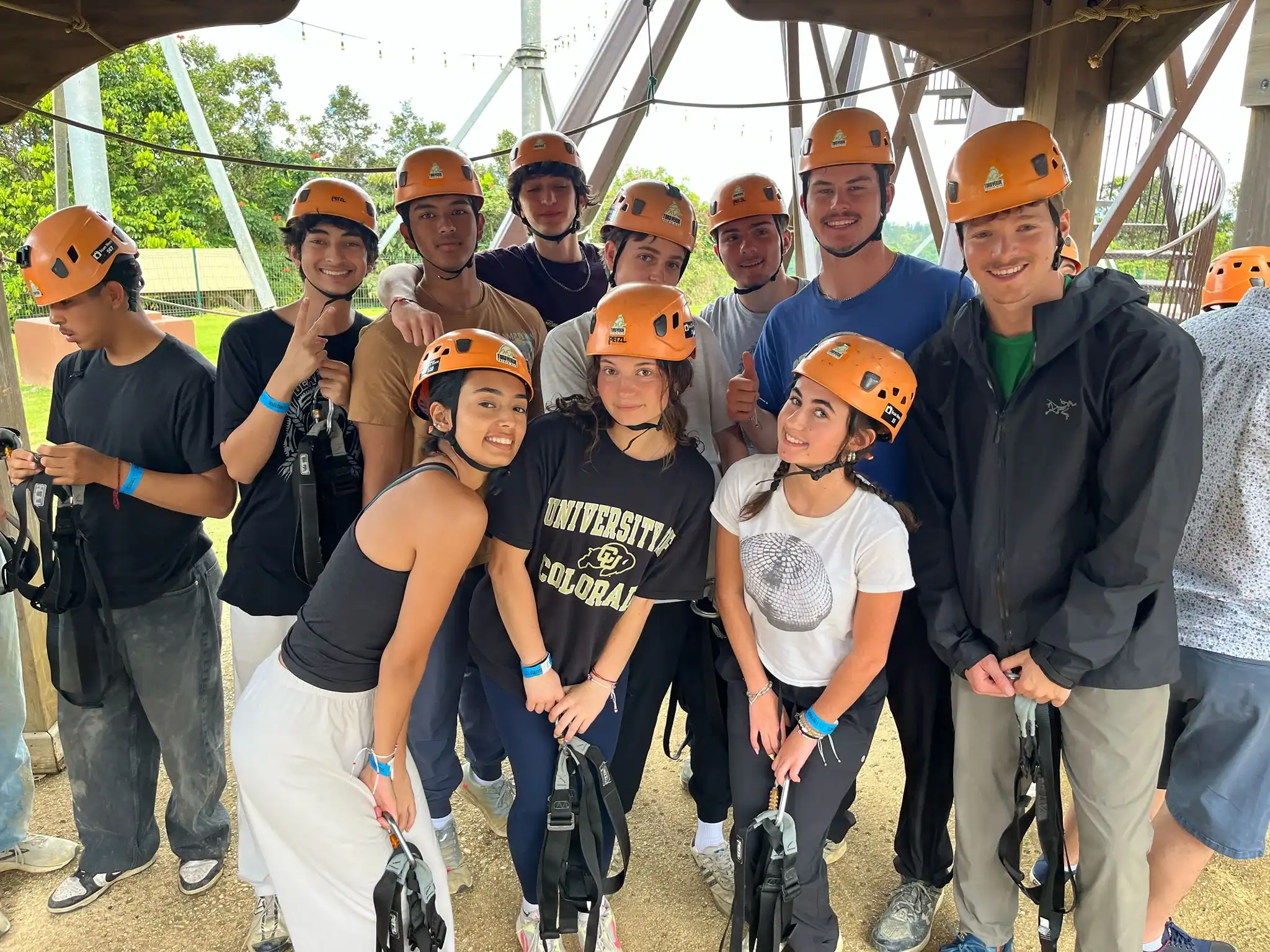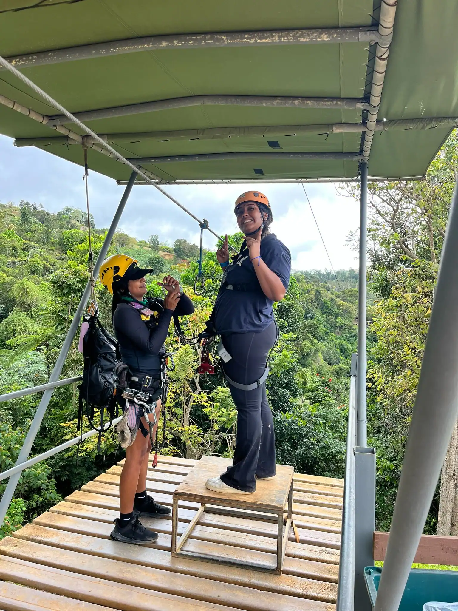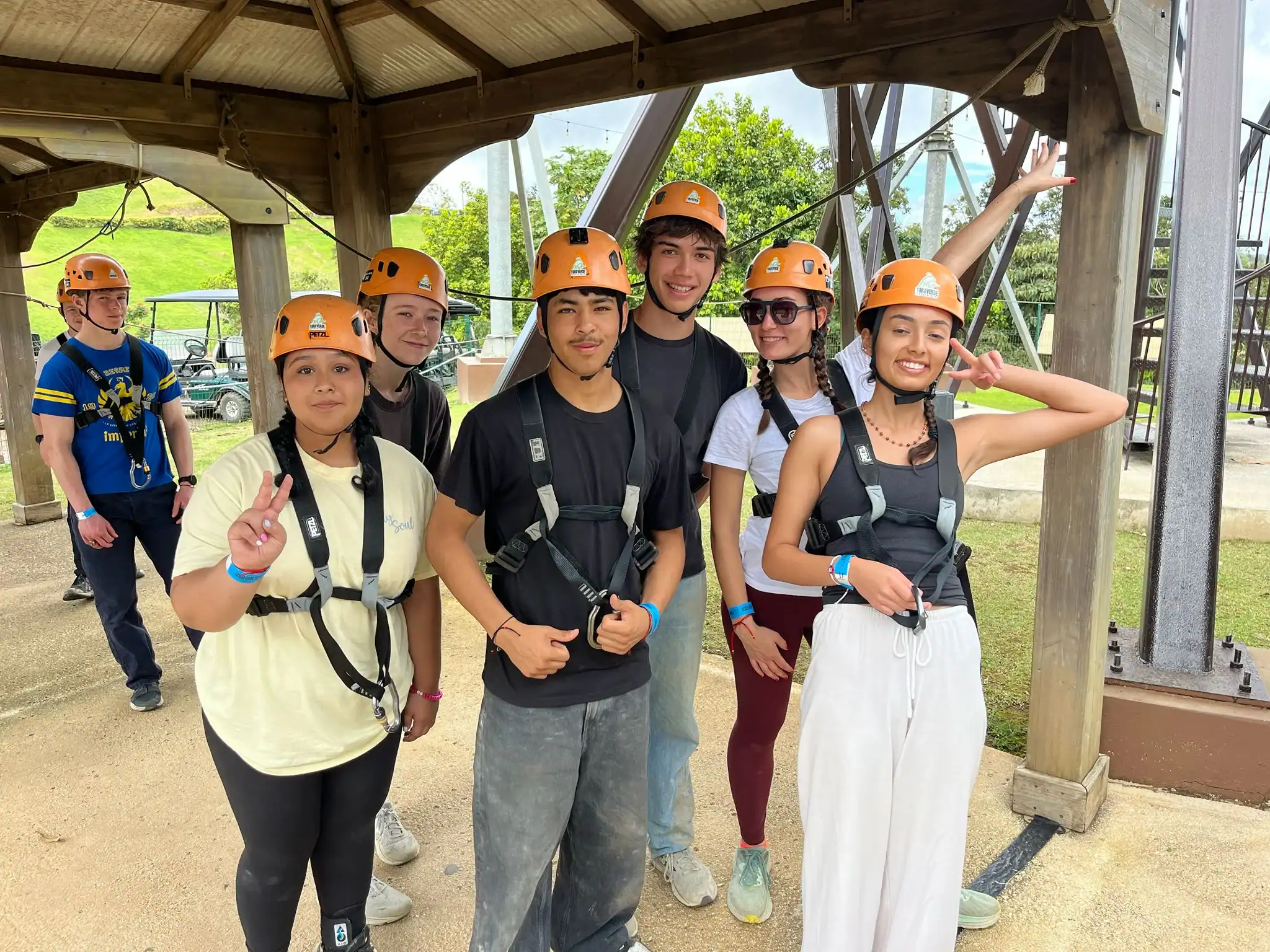 Today, we woke up to eggs and pancakes for breakfast. It was scrumptious. Next, after getting ready, we piled into the bus and went on an hour long ride to zip lining. The road was windy and felt like Transylvania, but we enjoyed each other’s company. After arriving, we were all very happy because the views were fantastic. We suited up and got ready to take flight.