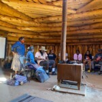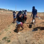 Today was very busy for us. First we learned about food sovereignty from a guest speaker. After the slideshow we tried blue corn bread, which is juniper leave ashes and blue corn, which is mixed with boiling water. The blue corn has anti-oxidants which is very good for you. Plus the juniper leaves has plenty of calcium. Next we learned about how early indigenous civilizations engineered multiple system to enhance the land and improve their way of life. We also learned how they used controlled fire to manage which organisms moved in. Next we planted multiple fruit trees to leave our mark on the land. Finally, we climbed the mountain to look at petroglyph drawings made by indigenous people from long ago. Each image represents a specific thing, like sheep, snakes, chiefs, and many more things. Overall today was very busy for us and we learned much about Diné culture.