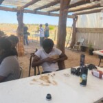 Today we learned about kinship and how elders will greet the younger people as their children. We learned about how kinship works for Navajo people and how it starts or from where their mother is from. We also learned about how the people here sheer wool and the different tools they use. It was very interesting to see how they rely on sheep for income, clothing, and food. A lot of people make money from making pieces from wool. Some are more in need for more money depending on their situation. We then went to witness the people harvesting a goat and what saving blood means to them. We then played with puppies and took a group photo. And then we ate the goat that was killed. We watered plants and corn and dug deep pits for floods. And then we got to say goodbye to the Navajo people and tell them what we were grateful for during our time there.