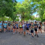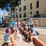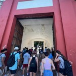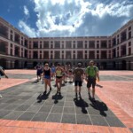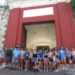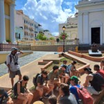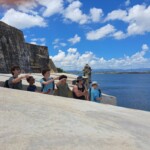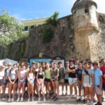 Welcome to the first full day of our service trip! We started off the day with french toast sticks, mini pancakes, and sausages at 7:00 AM. After breakfast, we took a few minutes to pack our backpacks, then headed off to Old San Juan via bus at 8:00. It was a 45 minute bus ride, filled with lots of Bad Bunny and other Puerto Rican music. When we arrived, we were greeted with a heat warning sign. It was really hot and humid, but we persevered, with a few breaks in the shade. Alvin, our tour guide, led us around the city, educating us about its history and cool facts. The sights we saw included monuments, the smallest colonial apartment in the Western Hemisphere, and an old fort that has been around for hundreds of years. The first fountain we saw was the Raíces Fountain, which represented the 500 year anniversary of the discovery of the New World and the roots of Puerto Rico, built in 1992. We then proceeded to tour a raised land surrounded by a wall 3 miles wide around. It was fascinating to also see the Governor’s Mansion. We then toured the Cathedral which held the remains of Juan Ponce de Leon, and took some photos. After that, we explored El Morro until 10:45. There were iguanas everywhere and, surprisingly, they ran very fast! At this point, we were getting hot and hungry, so we walked to get lunch where they served us traditional Puerto Rican food – lots of chicken and rice! We walked through the city on narrow, old cobblestone streets. The stones were color-changing because of all of the years they’ve been around. After lunch, we went to get souvenirs and popsicles around local Puerto Rican shops. As soon as we got our popsicles, it started to pour, so we waited under a cover until it lightened up. We hopped back on the bus at 2:00, and on the bus ride home, almost everyone took a nap. When we got back, we took one hour before we went to the beach to cool off and go for a swim. For dinner, we had chicken, potatoes, salad, and leftover rice. We finished up the day by having a trip meeting and talking about the schedule for tomorrow’s first day of work. Good night!