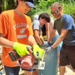 Today began with a breakfast of mini pancakes, sausage, egg quiche and an assortment of fruit. Shortly after breakfast, we split into two different groups. One group went to the worksite from the day before, the second group went to a site deeper into the jungle. At Edmil’s home, groups continued to build the molds for concrete that we will pour later in the week. Building the molds included cutting rebar and nailing plywood. At the second worksite we were introduced to a new family, where we worked on finishing the extension of a home for an ill woman and her husband. Specifically, we worked on prying wooden molds off of completely dried cement. Once the molds had been pulled off we had to even out the gravel around the foundation of the extension. As lunch came around, both groups met at Maria’s home for a home cooked meal of chicken wings, rice, and salad. After lunch, groups reorganized and returned to Edmil’s house to complete the molds. The other group remained at Maria’s and helped clean up around the home and pick up trash in the local neighborhood. After about an hour, both groups reconnected at Edmil’s and then returned to the Big Yellow House. The majority of the group headed to the beach for a mid-afternoon swim. After the beach, everyone came back and cleaned up for a delicious dinner and our first salsa class! At first, the class was nerve racking, but shortly into it everyone eased into the dance, with the excellent instruction of our teacher, Yara. Everyone had a blast and continued dancing after Yara left. Many elected to end the night a bit early in order to get up early for the next exciting day ahead in the rainforest.