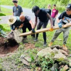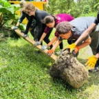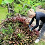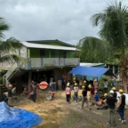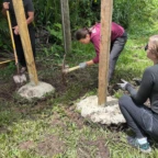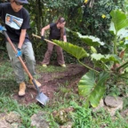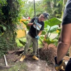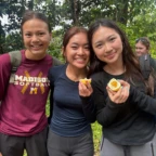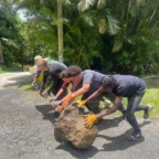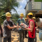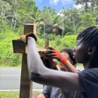 Good morning from Puerto Rico! Today we had an early start to the day at 6:15. We began the morning with a fresh and nostalgic breakfast of cinnamon french toast, buttery eggs, and an assortment of fresh fruit and juicy sausages. Following breakfast, we created a circle and stretched to prepare our bodies for the long day of labor ahead of us. Next, we headed off onto the bus for about an hour long ride to the rain forest where we were greeted and welcomed by the community and nature itself. We split into groups with Andres, John and 3T where we each had an important task to improve the experiences of those who live and tour the rainforest. With 3T, some of us worked in the garden where we ripped weeds, cleaned up the rows, and replanted new life. Alongside the road revisions, improvements were made to the trails within the rainforest. We set off on a short, but muddy hike where wood was collected to make the stairs along the trail. First, we measured out pieces of wood that would be tied by rebar to make sturdy steps that would allow people to walk up and down the trail safely. After a productive, but tiring few hours of work, we gathered in the homestead for a comforting meal made by Monique and the rest of the community. Spaghetti and meatballs were served, alongside a fresh and delicious salad. Following our delicious lunch we gathered around and listened to 3T speak about the importance of solving deforestation and contributing to the change as volunteers. To wrap up our experience in the rainforest we rode the bus to a swimming hole where we had to again, walk muddy trails. The water was fresh and cold and allowed us to rinse off our hard work. Lastly, we ended our day with delicious and juicy chicken and potatoes for dinner paired with rice and leftovers from yesterday. After a greatly fulfilling day we each learned that deforestation is a large problem here in Puerto Rico. Today we each did something that was critical in order for change, a first step in addressing an issue: deforestation. We accomplished what’s necessary and needs to be done. To finish our long day, we enjoyed free time and played a bunch of card and board games with each other at the Big Yellow House.