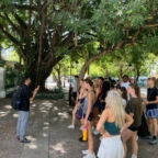 Good morning Puerto Rico! Today was a normal wake up call where we were greeted by the fresh smell of cinnamon from the warm french toast that enlightened the day upon arrival! Other things that were being served for breakfast were delightful sausages, and creamy and delicious fresh fruits. After we all pounded our food down we said our final goodbyes to the Big Yellow House and hopped in the bus with all our spectacular luggage. Due to some minor issues we were unable to visit the beautiful water hole, but we bounced back with a fantastic and lavish shopping experience with a delicious meal for all. After lunch we split our group between very cool and new hostels, Casa Coral and Surfing Turtle 🙂 Once settled in we swam in the river by the ocean right next to Casa Coral. After this we ate a quick pizza dinner and sodas! We then wrote a letter to our future selves and it will be sent to all of us in the next six months. Then, we finished getting ready and drove to our Bioluminescent Bay Tour where we got to kayak through the beautiful mangroves into the bay. After all that we finished up the night with a closing activity, then getting our phones back and spent time speaking to our beautiful family members while also saying goodbye to our new family.