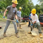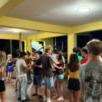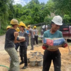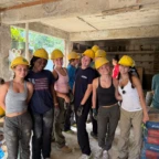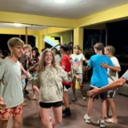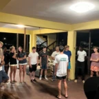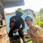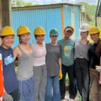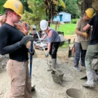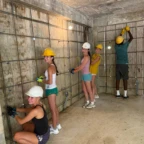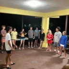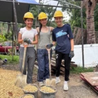 We woke up at an early 7:15 this morning and packed our workplace essentials for the day, our gloves, close toed shoes, sunscreen, and most importantly water. For breakfast we enjoyed delicious waffles, lots of fruit, eggs, and some slices of ham. We washed down all our food with some fruit juice. After our morning meeting and stretch we hopped on the bus and drove through the scenic roads and quickly arrived at our destination. There was a family of dogs waiting for us at the workplace. We efficiently debriefed about what work we would be doing that day and we started on our cement assembly line. At the beginning of the line there were members of our group shoveling rocks, sand and water into the cement mixer. The cement was then poured out, scooped up and put into buckets. Those buckets were rapidly transported down the line and poured into the wall mold. After filling half of the walls we took a lunch break and headed to Maria’s house for an amazing lunch of salad, yellow rice, and homemade chicken nuggets. After finishing our food, we hiked back to the house and finished our project for the day. Many of us were covered in cement! As soon as we got changed out of our dirty clothes we rode the bus back to the Big Yellow House. Instead of beach time today, we hung out at the house and called our families. We also finished our check ups with the leaders and took showers. After our casual afternoon of recreational activities, we enjoyed dinner. Our dinner was crispy pork chops, salad, flavorful white rice, and leftover pasta from the night before. There was a brief hour where many of us joined together and talked before our entertaining night of salsa. We all gathered and learned about what activities we have planned for the next day. Our salsa instructor was our amazing leader, Lauren. We learned four basic moves and practiced them with our partners. One move at a time, we moved around and danced with new people. It built a connection between many people and allowed them to connect with dance. We ended the class with some free dance. Once we completed that activity we headed downstairs to close out the night and with excitement still lingering from our dance class we headed to bed.
