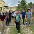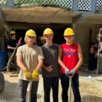 Rise and shine Puerto Rico! Today we had a slightly later wake up time, which we were thankful for. We were surprised by some fluffy warm pancakes along with some scrambled eggs, slices of ham and some refreshing juice. We enjoyed our meal outside in the already bright sun. As we prepared for our first day of construction, we packed the worksite essentials like work gloves, boots, sunscreen and water. We hopped on a big yellow bus to make our way to the construction site and were delighted to see a group of cows on the side of the road. At the worksite, we learned that the purpose of constructing this house was to give an ill elderly woman a place to live comfortably and return back to her home land. After receiving helmets from Angel and Willy, they instructed us on how to prepare the base of the walls that would later be filled with cement to give this family a wall to what will soon be their home. We split into two groups, one to fetch wood and the other to start securing the rebar with pieces of wire. After our hard work, we were led by Angel’s three grandkids through some steep hills to Maria’s house, where she served us a delicious home cooked meal of white rice, pollo guisao’ and fresh salad. We enjoyed the food and felt very welcomed by Maria and her family. As we made our way back to the work site a sprinkle of rain foreshadowed what was to come. Upon our return, we were able to finish what we started in the morning, which meant we were now ready to pour cement tomorrow. Once we returned to the Big Yellow House, most of us walked down to the beach where we relaxed in the warm Puerto Rican water after a long day of work. Later that night for dinner we enjoyed some pasta and meat sauce along with more greens. After supper, we headed upstairs to debrief about the documentary of the ongoing issues in Puerto Rico which we watched the day prior. We discussed how we felt about the situation of Puerto Ricans and how their homes were being taken away from them. We learned that Act 22 allows Americans to purchase land in Puerto Rico and make a profit off of it without contributing to taxes which affects the living conditions of Puerto Ricans. We followed up with some games as a collective which brought smiles and joy to the group. The excitement and joy carried on through the house as the night went on before bedtime.