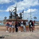 We started our day early we woke up at 6:00am. Got dressed then head upstairs to the outside patio to enjoy our breakfast. We had pancakes, ham, scrambled eggs, toasted bread and fresh fruit. Then we headed out on the van to go on a 40 minute drive to Old San Juan. Then met up with our tour guide Alvin and he then gave us a quick history lesson about the town while walked around. We then got to see Juan Ponce De Leon properties, for example his church and his house. His church was newly remodeled and when the construction workers were remodeling they found historic pieces and hidden stained glass windows that were covered from the wars they previously fought. We then got to explore Castillo San Felipe del Morro in our groups. Which afterwards we went to go eat lunch at La Fonda. Which had really good food and cute servers. Then we got to enjoy some time shopping for us and our families. Which some of us got clothing, jewelry and souvenirs. We then got to go get some ice cream on this hot sunny day, and watched someone fall off a scooter.