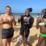 Once we were done eating our palletas the van came and picked us up and took us to our new dorm that we’re staying in for the rest of our trip. Then after we got to our dorm, Derek gave us a tour and welcomed us. Once we settled in we got ready to go to the beach but ended up trying kayaking and paddle boarding. That didn’t last very long because most of us did not enjoy being in the dirty stinky dark water. We then decided to spend the rest of our free time going to the beach and enjoying the fresh water. But Weyni broke one of her nails and lost it in the ocean. All in all though we enjoyed our time and the ten minute walk back to the house we’re staying in. We cleaned all up afterwards. We ate rice, salad, friolles, pollo, y carne asada. Then had a group discussion about what we learned today during our tour and just about Puerto Rico in general. we also discussed the project and how we’re gonna go about it tomorrow.