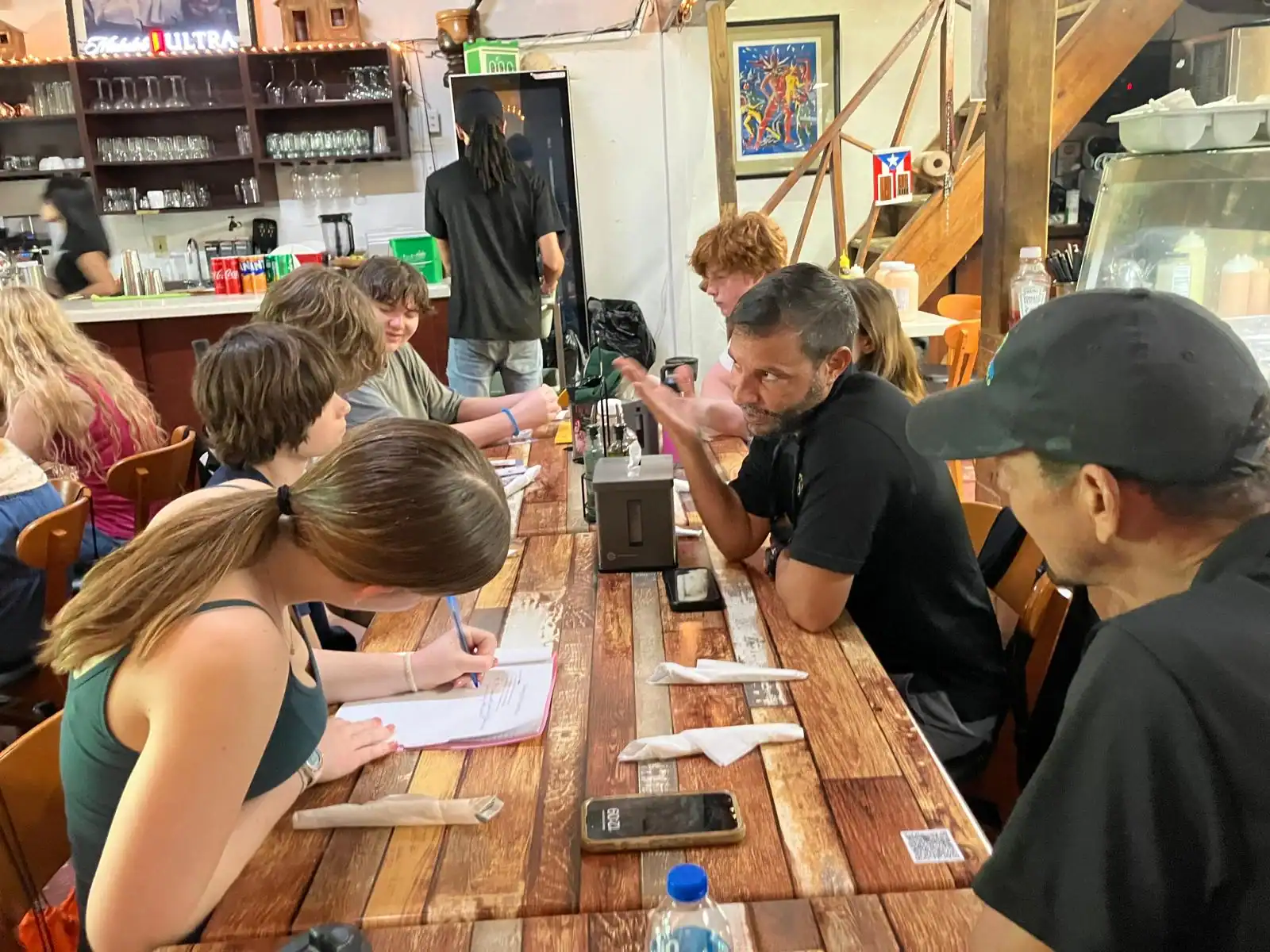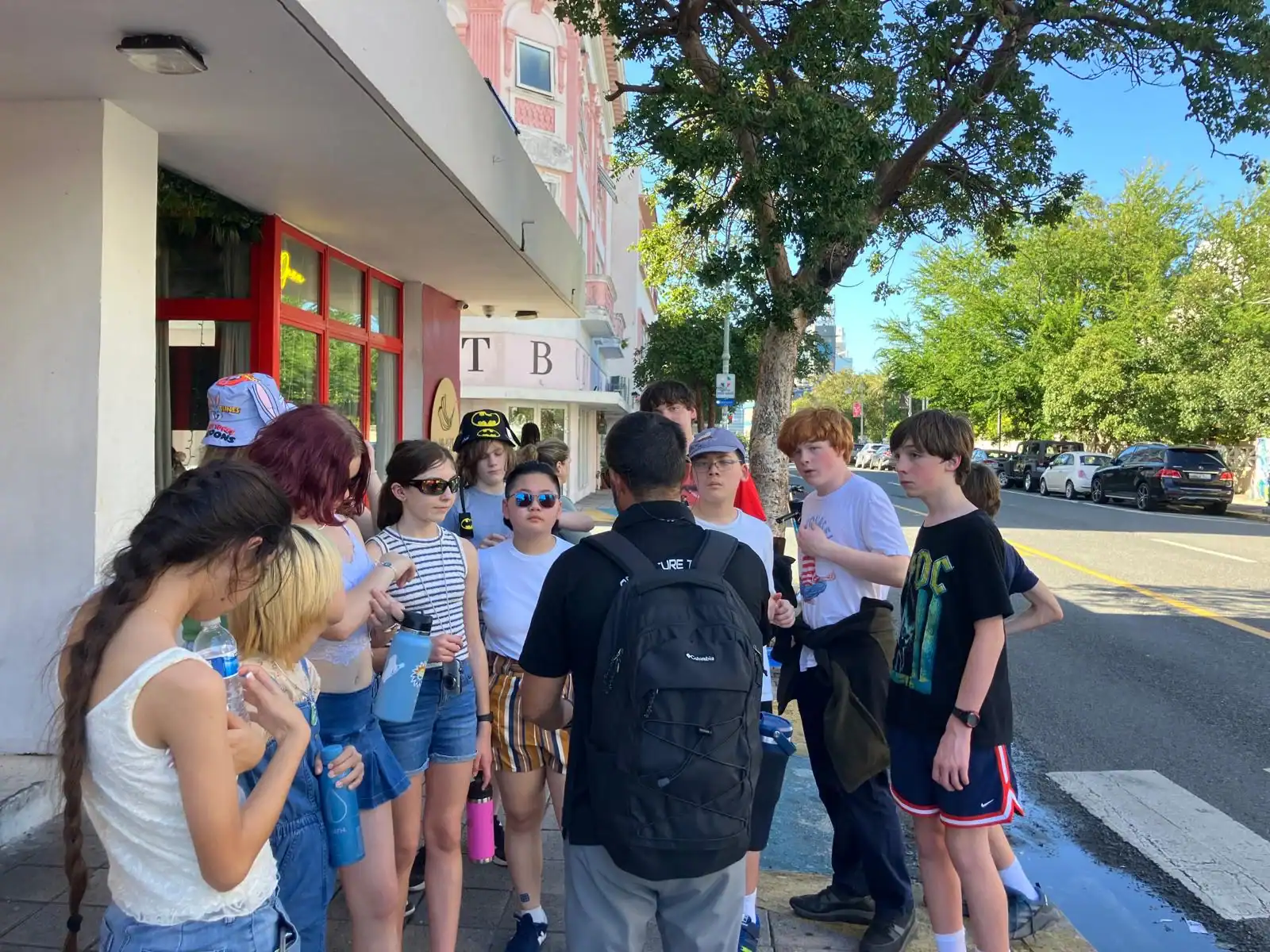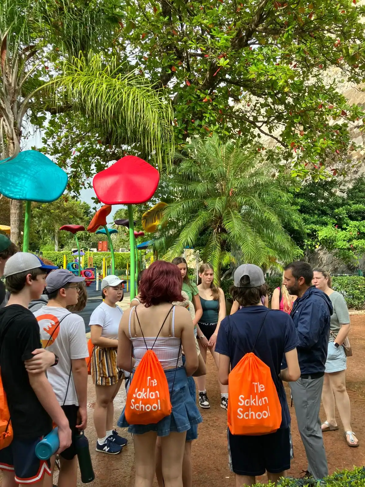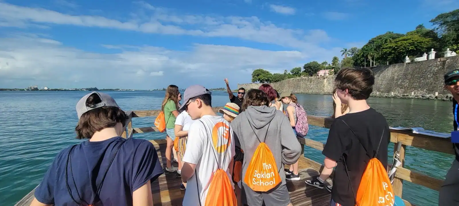Today was a great start to our Puerto Rico trip! We began the day with a delicious breakfast and then set out to explore Old San Juan. We walked along the blue cobblestone streets and observed historic monuments such as churches, statues and fortresses. El Morro was one of the fortresses that we visited, and it had a gorgeous view of the ocean, many tunnels and staircases, and great spots for photos. Next, we walked among the colorful buildings of Old San Juan to get to our lunch restaurant. We ate tasty Puerto Rican cuisine before exploring the local shops to buy souvenirs. Some of the souvenirs that we bought included sweatshirts, jewelry, bucket hats with ears that move, t-shirts, and some local instruments. We also stopped at one of the narrowest houses in the world, which is only five feet across the entire way back!