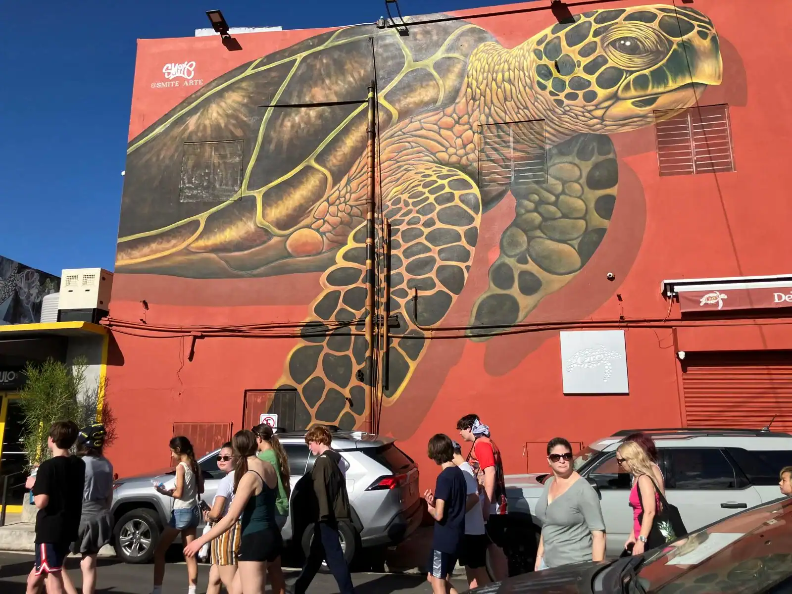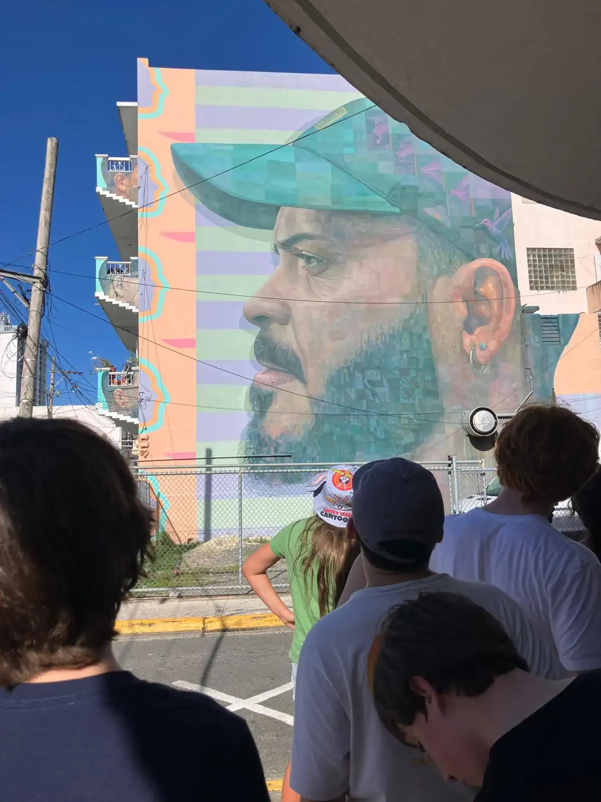 Then we headed to Santurce, another one of the neighborhoods in San Juan, and we walked along the streets to view the huge murals and street art. After a long day of walking in the heat, we finally returned to the Big Yellow House and relaxed in the ocean. We saw a horse swimming in the ocean, which was a surprise for all of us! After visiting the beach, we showered off and ate a dinner filled with more Puerto Rican food. Our favorite parts of the day were visiting El Morro to explore the different levels, playing in the warm ocean, and observing the murals of Santurce.