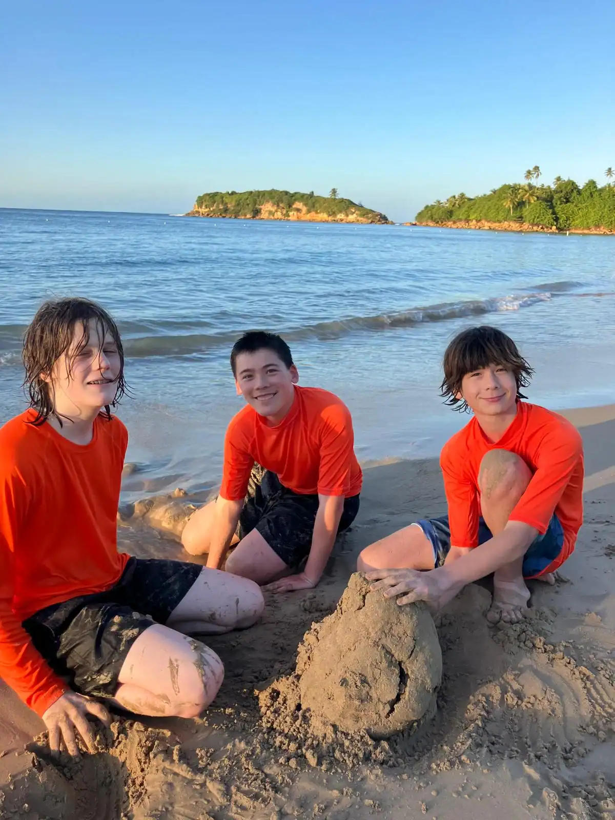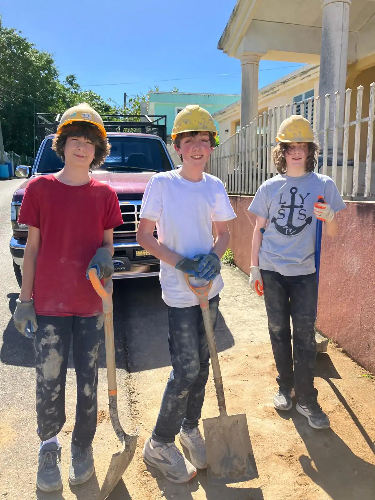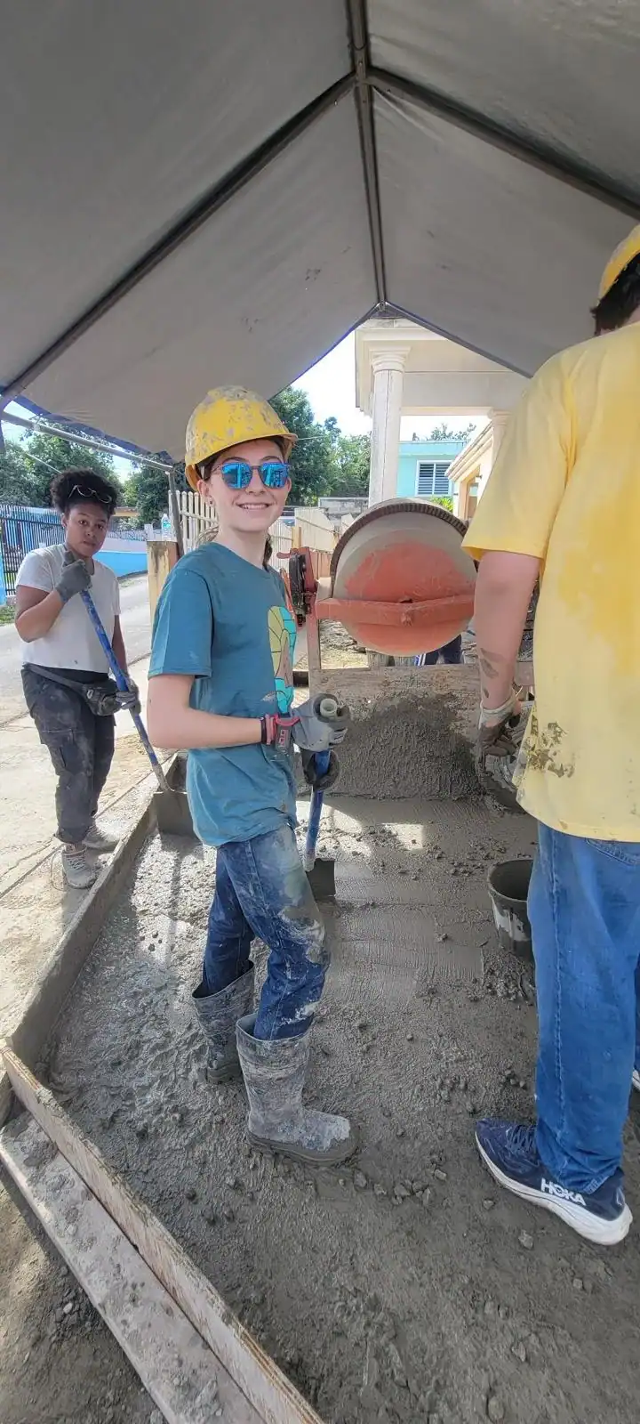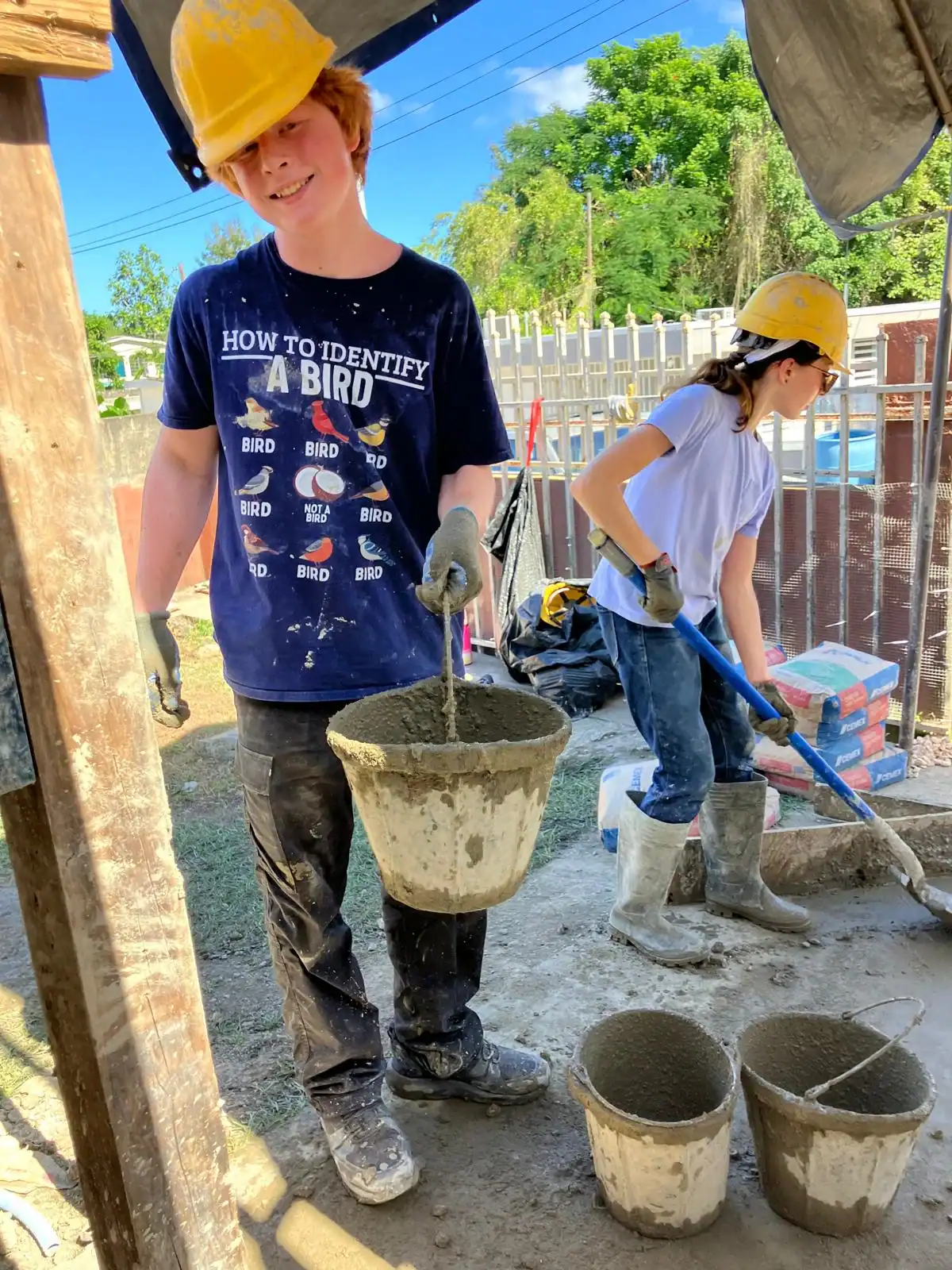 Today we woke up in the morning and ate pancakes. After that we went to the worksite to begin the construction project. We poured buckets of sand, shoveled concrete, and passed buckets full of wet concrete. It was very challenging in the smoldering heat and everyone sweated a lot, but we made sure to stay positive and hydrated. After we had finished with construction, we went to a member of the community´s home, and we learned about Angel’s, the foreman, experience with hurricane Maria. Angel and many others lost everything in the hurricane and Angel has helped rebuild over 60 houses since. Once we had left and thanked them for lunch, we went to the beach to swim and relax. When we returned to the Big Yellow House we had pasta with red sauce for dinner. Following dinner, we learned how to salsa dance, which was quite tiring! The best parts of the day were visiting the beach and playing in the sand and water. We also enjoyed seeing the completed floor that we made at the construction site.