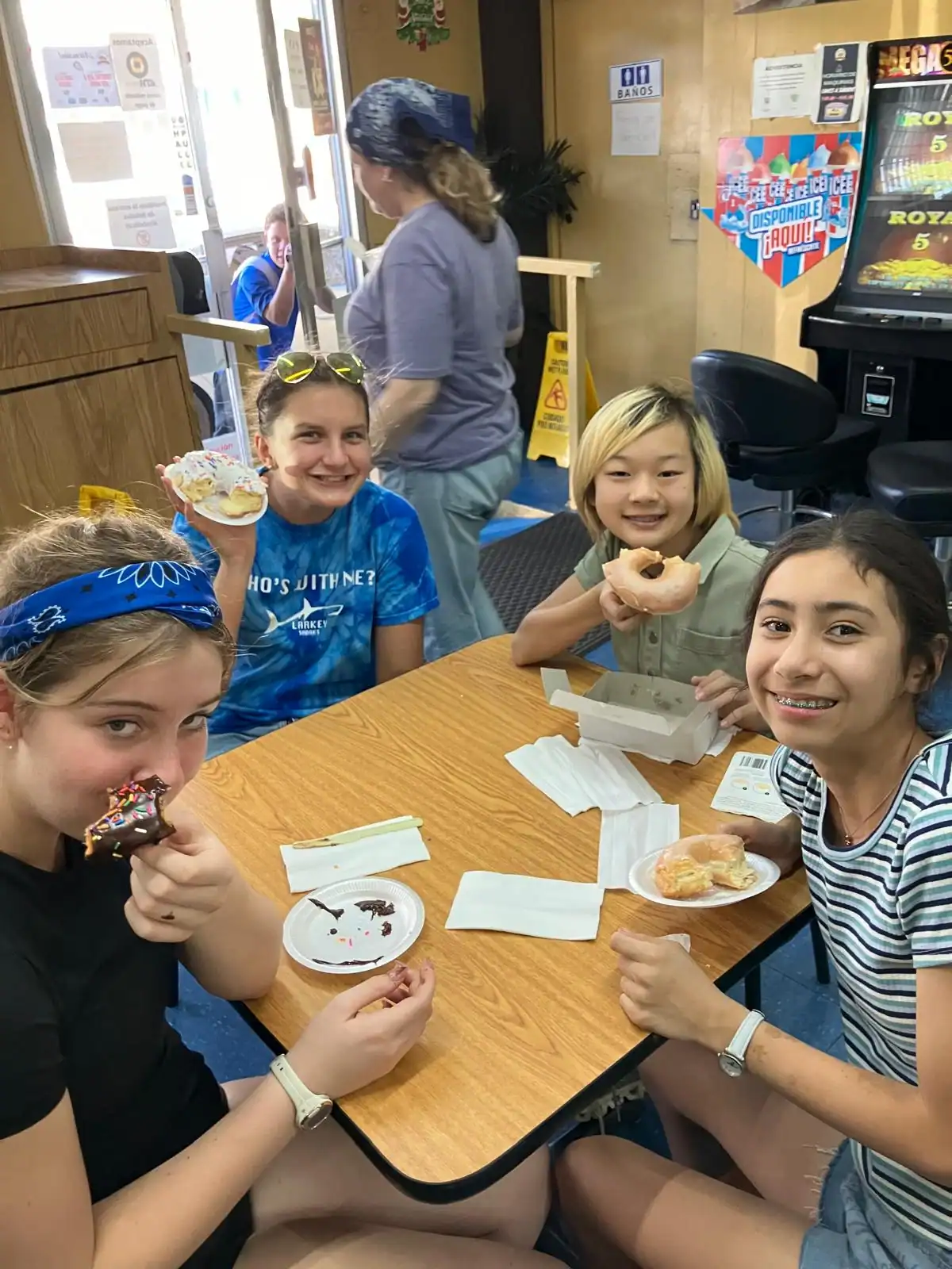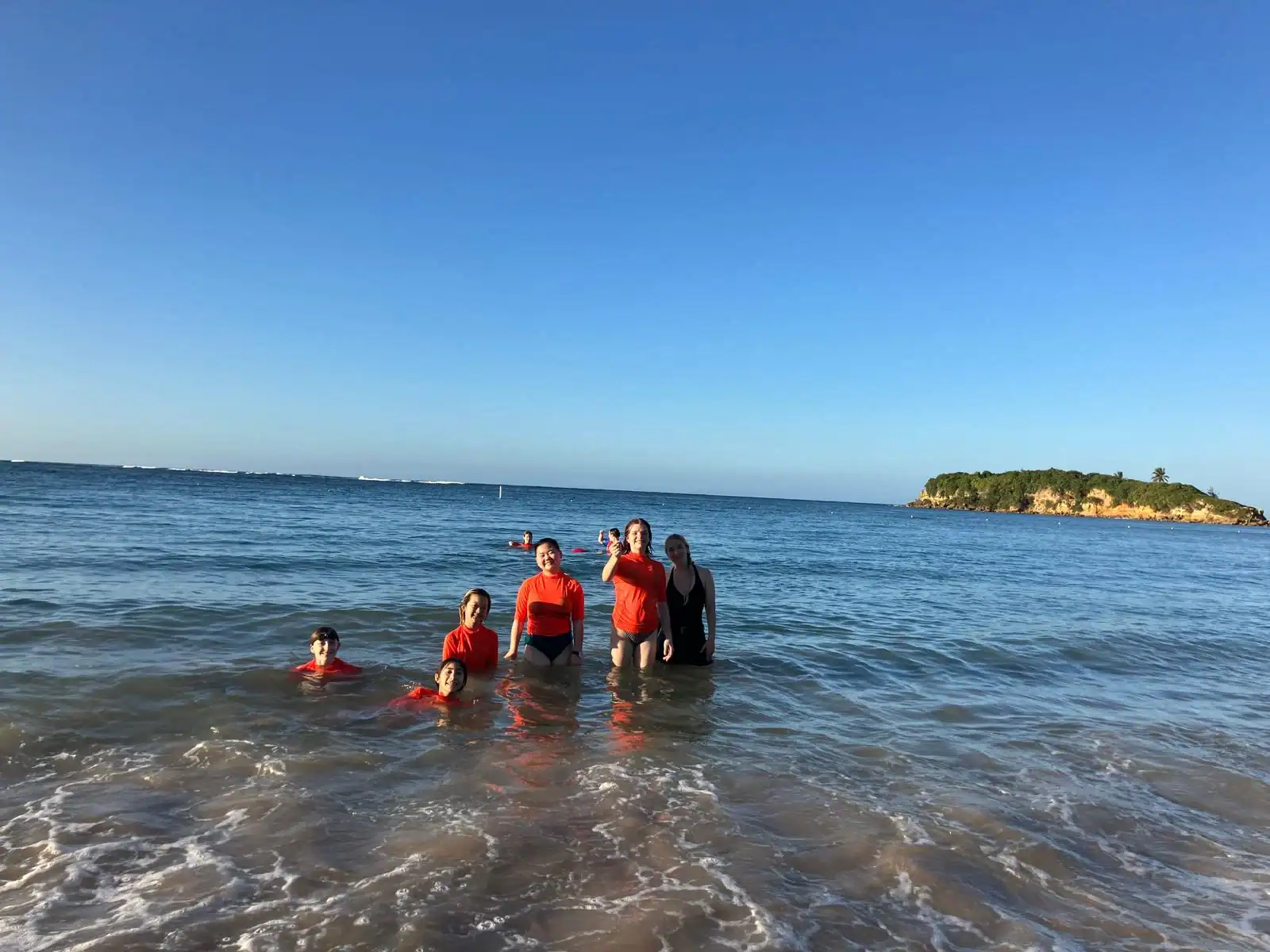 When we were finished with construction, we were welcomed back to Maria’s house with a very delicious lunch, and a very friendly dog that we called Lil Brunc. Our delicious lunch today was rice, beans, chicken nuggets, and salad. After our lunch, we headed to a local bakery where Ms. O bought us giant donuts the size of Lil Brunc! Then, we went to a nearby supermarket where we bought a bunch of delicious and exclusive Puerto Rican snacks. After that, we went back to the Big Yellow House to get ready for the beach. The beach was super fun, and when we got back we all ate a really delicious meal. Then we enjoyed the rest of our day with group activities and free time.