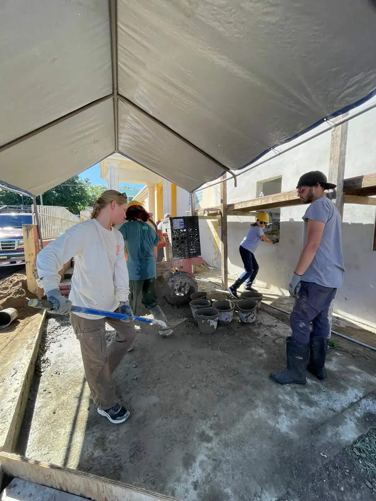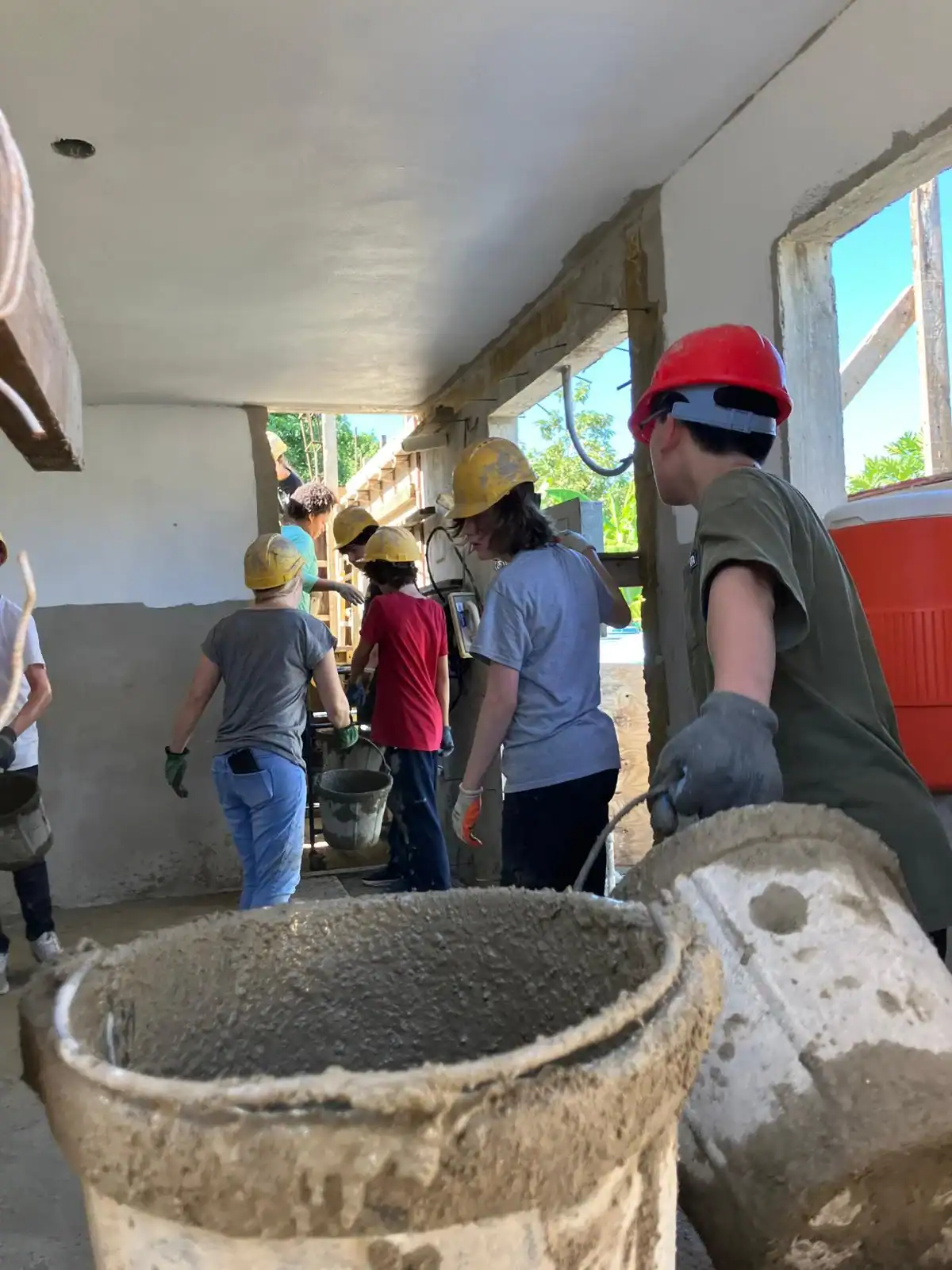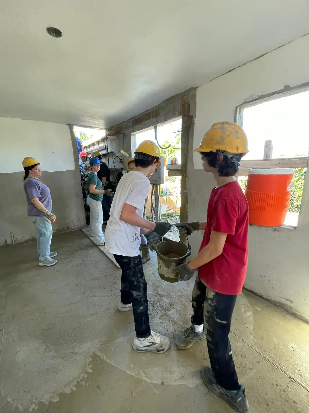 Today when we woke up, we were greeted by a delicious waffle breakfast. By the end of breakfast, we were ready to rumble and headed to the construction site. Angel told us that today we were going to be filling in the walls with cement. The jobs for today were, shoveling, passing buckets, and filling in the wall. We worked tirelessly and filled in the first wall in only 45 minutes! During our breaks, we were surprised to receive different snacks like fruit, CapriSuns, and Gatorade. After each break we switched around our jobs and learned more skills for rebuilding houses.
