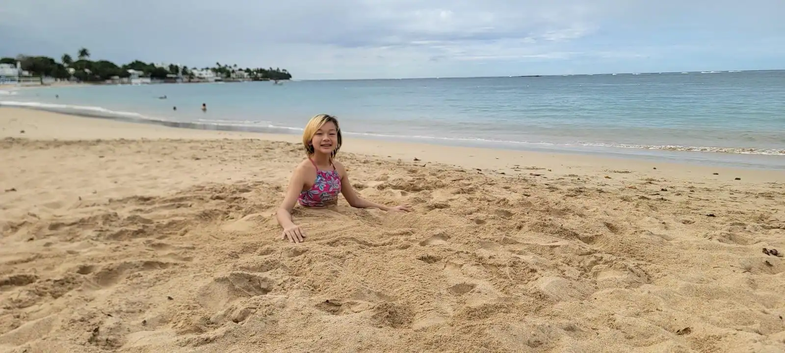 We ate a lunch that consisted of burgers and French fries, along with fruits of many kinds. We returned to the Big Yellow House and had a few extra hours of beach time, because we had finished early. At the beach, we used our creativity to dig holes and play with rocks in the sand. After a fun time at the beach, we headed home to pack up our luggage for our last night at the Big Yellow House.