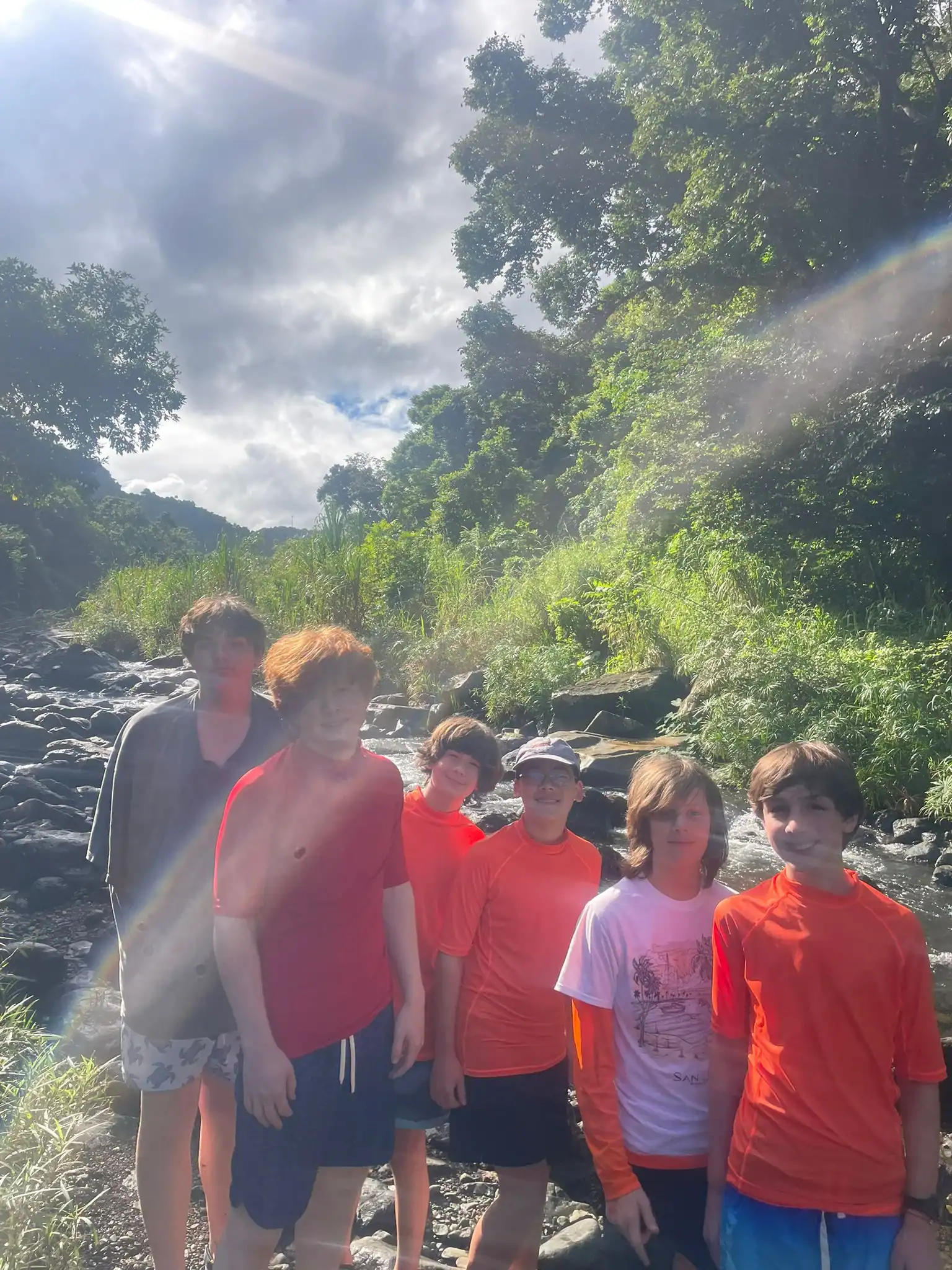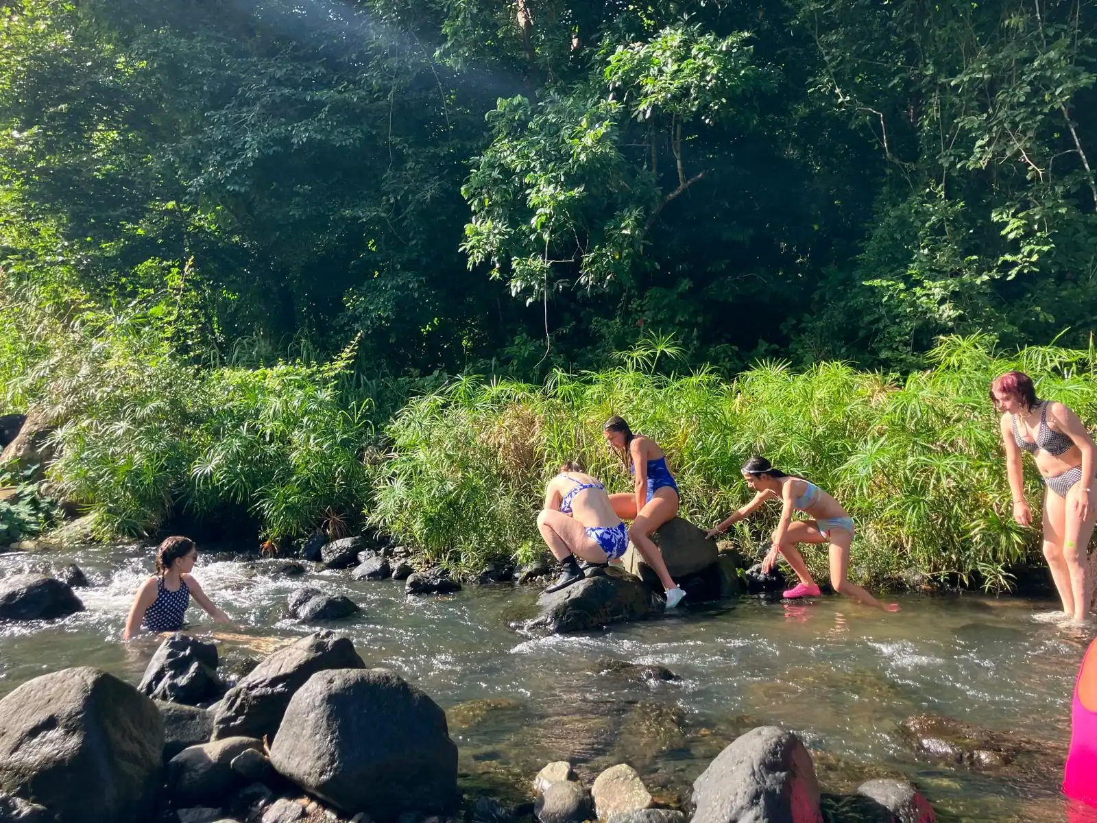Today we started off with an early wake up to eat a breakfast of delectable waffles, sausages, French toast, and fruit. We packed up everything and got in the vans for a one hour drive to El Yunque Rainforest. At El Yunque, we went down a short and muddy trail to a beautiful but cold river which we swam in for a nice, peaceful morning. After trekking back up the muddy trail, in our vans we headed to the El Yunque Visitor Portal, where we had to run through random bursts of rain to get inside. At the Visitors Portal, we learned about how the local ecosystem works, shopped at souvenir vendors, and adopted a Puerto Rican stuffed parrot where all the proceeds go to a recovery fund for this endangered species. Once we headed back to the vans, we ate lunch at Rest. El Terruño. There we ate some traditional Puerto Rican food, and tasted the island’s national drink, the Piña Colada (the non-alcoholic version!).