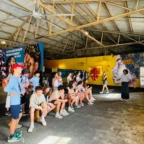 Today, we arrived in NOLA. With the Global Works organization, we spent our first day in Armstrong Park having lunch, eating at Calas Cafe, exploring Congo Square, and touring a museum about Black masking Indians. We took lots of photos, learned about NOLA, and had fun with our peers. We then went back to the cabins and had a delicious 2-part dinner with Jambalaya and Crawfish Boil. We made good memories with our friends and enjoyed our first day in NOLA.