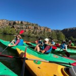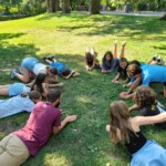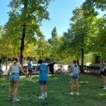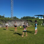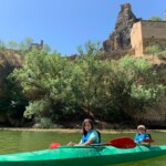 Our first full day in Catalejo, we woke up early and ate a traditional breakfast while watching the running of the bulls, San Fermines, in Spanish. After that, we headed down to the kayaks after playing a quick game of camouflage. After kayaking for about an hour and a half and learning about historical sites, we arrived at a small beach and swam to rocks that we could jump off of! We ate paella and ice cream for lunch after the kayak trip and made bracelets before heading to the local community pool. There, we played volleyball with some local volleyball players!