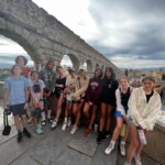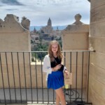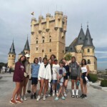 Before leaving our lodging in Cantalejo, we ate a hearty breakfast while watching more footage from the running of the bulls. Eventually, we had to say goodbye to our cabins and started the hour and a half drive to the lovely city of Segovia. In Segovia, we took time to view the massive aqueduct that cuts across the city, while discussing the history of the Roman Empire. After walking for a few more minutes we saw the elaborate architecture of the Catedral de Segovia, and eventually made it to the Alcazar de Segovia, a beautiful castle that towered over the city. Of course, we got a photo of the group on top of the castle’s tower, with the majestic Segovia skyline in the background. Once we left the castle we took time to visit shops in downtown Segovia. As we passed through a little plaza, we were all shocked to find a little baby owl hanging out in the grass! It was a cute surprise and a great way to head into lunch!