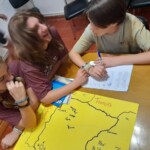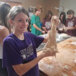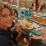 We then headed back to the house for a tasty lunch that consisted of a potato, pepper, and pork stew . After a couple hours of break time and playing some fun games we started learning how to make bread. We then each made our own bread with custom designs and started to make dinner which was pizza! The homemade dough was so fun to make! While the pizza was cooking we went to the next town over to play some soccer. At soccer, we met three local kids and enjoyed a nice and friendly match. After the soccer match, we headed back to the house to enjoy our pizza and some popsicles. To end the day we walked again to the palomar during the sunset to our nightly group meeting.