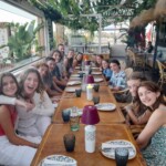 After our last look of the Sagrada Familia we headed back to the hotel stopping by souvenir shops and other stores. We got back and dressed up for our final dinner! Our final dinner was at and old bull fighting ring turned into a shopping mall. We ate at the top at a nice restaurant with views of the whole city! We had seafood, burgers, and other Spanish tapas and for dessert there was delicious cheesecake and apple pie with crema catalana (créme brûlée). We then headed back and had our final group meeting, where we did one last wrap up and gave bracelets to our friends. We then got ready for sleep and a travel day tomorrow!