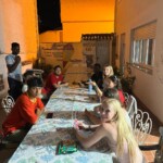 This morning we started the day with breakfast, including pan con tomate y frutas. When we returned, we had our choice of workshops, including woodworking, baking, making marmalade, gardening, sewing and more. One project we started was the creation of a mosaic. After wrapping up the workshops, we had a Moroccan lunch and a siesta. Some of us went to the pool during our free time and either swam or tanned. The next activity we did was making pizzas that we ate for dinner. During dinner, we joined the community to watch the semifinal in the Euro Cup between Spain and France. After a lively back and forth the night ended with a Spain victory and many olés!