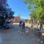 We began our day by eating a nice breakfast before getting back to our service work with groups rotating to farming and salvaging work as well as helping out around the house. All went well. And we celebrated by eating some delicious chicken. Once finished with our delicious meals, we learned and played traditional Spanish games with our generous hosts. We had a great time bonding and continued the afternoon with some team building games. After that we ate Spanish tortilla and green beans we picked ourselves at the farm. To conclude our day, a group of us took a walk to watch the sunset over the fields. We all had lots of fun and look forward to tomorrow.