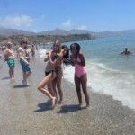 We began our day with a short bus ride from our Malaga hotel to the beautiful city of Nerja. There, we had the opportunity to explore one of the cities most fascinating landmarks, the Cuevas de Nerja. After walking through the caves, we strapped in to some virtual reality helmets to experience the caves from within. Afterwards, we walked down to the beach to enjoy a traditional Spanish seafood lunch. From there, we spent some time swimming at the beach before we headed over to pick up our kayaks. In groups of two, we explored the city’s beautiful cliffs and waterfalls from the kayaks and had the opportunity to jump into the water and swim around. After drying off, we took a second bus ride to the Fundación Escuela Solidaridad (FES). Upon arrival, we gathered with other children from the community to share a traditional Colombian dinner, play a few games of fútbol, and get to know each other. We ended the day very excited for our time in this community!