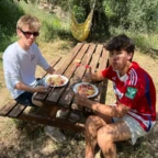 Today we woke up a lot later, thankfully, at 8:30 in the hotel with the long name. Zerbinetta, I think. Breakfast was really good, not takeaway thankfully. Croissants, doughnuts, fruits, cheese, ham, juice and cereals. After breakfast, everyone walked to the finca (farm) to learn about permaculture. We learned all about how the people there -Matteo, James, and Irene- live sustainably. They have compost bathrooms, they grow food of all kinds, and help keep the land nice. We did some activities like weeding where the creek should be and picking oregano flowers. It was honestly pretty cool to learn about. Also, a couple of the girls from the community, Monica and Gloria, did the activities with us. Then we made sandwiches at the farm for lunch and went on a soft hike. We hiked to a river and we’re kind of going in the water and wading around, really cold water. Then we took the bus back to our hotel for a 2 hour siesta. During siesta , a few of us played poker and wrote Isa’s birthday card! When Isa came down, Eleni put a blindfold on her and led her to a room where we all surprised her with cake (chocolate). Once the surprise was over we went to Spanish class with our teacher Pilar. We did packets and filled the blanks to a Spanish song. After the Spanish class, we took another long 30 minute walk to la finca. According to the company, we didn’t need a bus, but I think we can all disagree with them. We then all flamed Mohammed about wearing three layers in 90 degree heat to keep the bugs away. We finally got to the finca and immediately washed our hands to start making homemade pizza. We ate it while listening to Matteo’s amazing song choices and under the nice evening sky. We had some good free time with the cats (I don’t know their names) and the dogs, Dino and India. And after that, we sang a second happy birthday (in Spanish) to Isa, except with a homemade cheesecake. After an energetic night meeting with our amazing leaders of the day, Eleni and Sam. We finished our night off with another long hike back to our hotel which included Archer and Bach scaring everyone and singing from Hamilton and Glee. What a long fun day, time to rest. Good night !