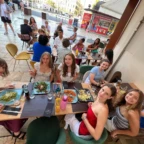We started our trip from Lozoya village VERY early this morning (5:30!) and embarked back to Madrid in order to take a speed train that went up to 290Km/h. The train ride was long, but we passed the time quickly by playing card games, talking or calling up on sleep. Our first steps out of the train station into Barcelona were magical, and so is the hostel we’re staying at – very nice beds. Soon after, we embarked for lunch.