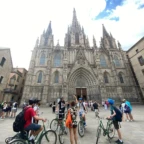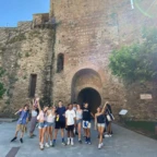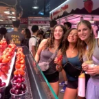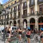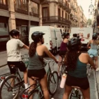 We started today by enjoying breakfast at our new hostel in Barcelona. Afterwards we walked 20 min to a bike shop where we met our 3 bike tour guides. We split up into 3 groups and took off to explore Barcelona. During the tour we visited the beach, the town hall, the music hall and more. Our tour guides taught us more about the history and culture of Barcelona and Cataluña. After the bike tour we spent 2 hours enjoying lunch at the Boqueria Market, a popular food market. Some of us went out close by to shop. Then we took a lovely siesta back at the hostel. We slept, played pool, and put on some fake tattoos (don’t worry they wash off with soap!). After siesta, we took the metro to the Sagrada Familia, one of the most amazing churches in the world. It’s the oldest building that is still under construction and was designed by Gaudí. Then we did some more shopping in downtown Barcelona. While we were walking the craziest thing happened…we saw JUSTIN BIEBER (we think)!! We were given plenty of time to go around before heading to dinner at Bilbao Berria a Tapas restaurant where we ate pintxos (traditional food from the Basque Country). We finished the night off with a group circle, some pool and an early bedtime.