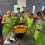 Today we had a calm start with a beautiful breakfast in the hotel. We then gathered to walk over to CEAR, an immigration center, to learn how immigration works in Spain and hear a captivating story from an individual currently going through the asylum process. Ibrahim explained the harsh reality of his journey from the Gambia over to Spain on a crowded boat for 6 days with inadequate food supplies and no hygienic areas. He has now been in Spain for around a year and is not even close to the end of these processes. The CEAR employee, Diego, explained the complex path that immigration is and allowed us to provide our own insight on ways to help improve the quality of life of immigrants going through these processes. Through the information from Diego and the eye-opening story from Ibrahim we were let into a new world and are now able to better understand and empathize for those facing the difficult path of immigration. Following this experience we were able to go shopping for almost an hour before heading out to lunch at a restaurant. Many people got a form of taco or burrito with birria meat which was delicious😋! After lunch we had a 3 hour siesta: people did laundry, went shopping, or chilled in the hotel😎. At 6:30 we took the bus to our paella cooking class wear we had three groups and we all competed to make the best paella. Alongside the main dish we made a bread and cheese dip and non-alcoholic sangria. Overall the food was super yummy and it was such a fun experience🤩! To end off the day, we then walked about 5 minutes to a gorgeous beach to take pictures and watch the sunset. The views were insane🤯. We took the bus back to the hotel and packed to get ready for the next day. Overall, today was the perfect mix of education, tourist attractions and relaxing, showing the true meaning of travel🤗.