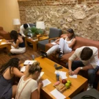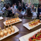 Today we started our morning with our final breakfast at Ciclo Lodge, it was very relaxing and the perfect start to the robust day ahead. We then headed over to the lake with our guide, Henry, to play games on kayaks, many of which involved racing. The losers of these games participated in challenges including standing on a kayak, switching places, and dancing the Macarena! By the end of it, everybody was drenched in water but we immediately jumped into the next activity…a scavenger hunt around town!! Using our surroundings as clues, we divided into groups and used a map to figure out our way around town. Once everyone finished the hunt at the hotel, we cleaned up and ate lunch at the hotel. Then we all had a siesta where we all played card games and went into town as we waited for the bus. The bus was an hour long to the same hotel that we stayed at at the start of the trip in Madrid. Everyone felt the nostalgia from their first days on the program. After settling in for an hour we got churros and ice cream and took a walking tour. Sebastian, our guide, took us through the town showing and explaining to us the history of the city. Following his insightful knowledge, we had dinner at a little tortilla shop that looked like a cave – Meson de La Tortilla. We got about 30 minutes of shopping time after and headed back to the hotel for our nightly reflection. As everyone goes to sleep, we all prepare for our last full day together in Madrid!