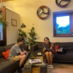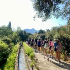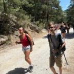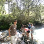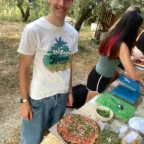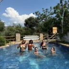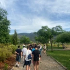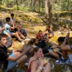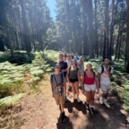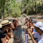 Today was day three of our adventure. We started our day off with breakfast and the hotel. We then walked down to la finca furriola, which is run by Mateo and his wife Irene. Three other local teenage children, María, Elsa and Alba, joined us as we learned about Permaculture. La finca offered a lot of opportunities for us to experience permaculture. We picked oregano and helped create a dam. We learned that the water in the river was freezing because it came from melted snow on the Sierra Nevada. After a long morning on the finca we made our own sandwiches to bring on a nature walk in the Sierra Nevada National Park. The walk had incredible views, eventually we stopped near the river and had our lunch. We played games and even swam in the freezing water. Once we headed back to the hotel we had a 2 hour siesta. In which some kids swam in the hotel pool, played soccer, relaxed, and reset for the second half of our day. After siesta we all regrouped and headed downstairs to meet Pilar for a Spanish class. She taught us how to conjugate in present tense and infinitives. We had the opportunity to practice speaking out loud and have conversations in a bigger setting. Once our class was over, we trekked back to la finca for dinner. Upon arrival we were greeted with an array of delicious pizza making ingredients. We all made our own pizza from scratch with help from Mateo. All the toppings were super fresh. They even had homemade desserts including, cheesecake, brownies, etc. After saying our goodbyes we walked back to the hotel accompanied by a beautiful sunset. We ended the night with a big game of poker (no actual money was wagered)!