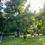 Today started with a 5 hour bus ride from Madrid to Dílar. We stopped a few times on the way and passed the time by playing cards and socializing. As we arrived to our hotel we had our first pool day in the rain. We played volleyball, Marco-polo, tag, and many more. After the pool we went over to the park and continued our ice breakers from yesterday. We met up with some local kids and adults and were told some information about local traditions and daily life. During the walk back we were able to observe the sun setting over the Spanish countryside. Afterwards, we got a scrumptious dinner at the hotel restaurant where we ate some juicy burgers before heading to bed.