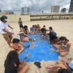 On a cool overcast non-descriptive day in Barcelona, we awoke with the sun at 7:30 and after a packed breakfast on the bus ride, we arrived at Mar Bella beach to meet with “Gerard” from Good Karma Projects. Gerard was a rugged man with wisdom beyond his years. His quiet yet powerful demeanor indicated that he had seen mother earth wronged in ways. We sought to clean up the fine beaches, voiding them of cigarettes and other waste. By the end of the morning, we collected nearly a thousand cigarettes (952). After the activity, we stayed at the beach and began to play a spirited game of jackpot in the Mediterranean which was enjoyed by all and paired with a beach side relaxation that soothed the senses and coerced the mind into a sense of calm. Once our beach itch had been scratched, we continued onto a bountiful lunch of burgers and fries. Lunch was delicious but as Geoffrey Chaucer taught us, all good thing must come to an end. We arrived at the hotel to begin and siesta that spanned three hours where we shopped, slept and packed. Our lovely leaders played a movie on the projector as well to help us relax. We then embarked down the block to begin the healthiest dinner of the trip at Flax and Kale, a certified B Corporation devoted to bringing good health to everyone in the fine city of Barcelona. As a nightcap to a great day, we shared our favorite moments from our roommates and ventured back to hotel already teaming with excitement for the adventure that awaited us tomorrow.