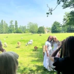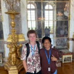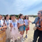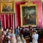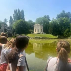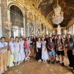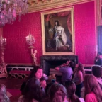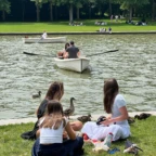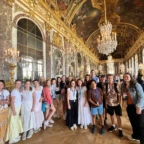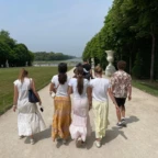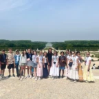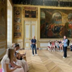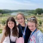 At the start of the day, we had breakfast at our People Paris Marais hotel buffet. We took two trains from Sully-Moreland to Jussieu and then the M10 to Javel Andre Citroen to RER C to Bersailles River Gauche. Today with Sylvanie our guide, we walked all over Versailles in both boiling sun and overcast skies. Inside the castle, it was beautiful looking into old rooms even the Royal’s bedrooms! We learned so much like when there was still a King Louis and Queen Marie there and everyday was an open house from dawn to dusk for the public. We went from the castle to the small courtyard/garden of the Queen to the large courtyard of the King which was perfectly manicured with both trees, shrubberies (topiaries) and flowers. We had a picnic with baguette sandwiches and giant raspberry and pistachio macaroons in the shade on the edge of the rowboat lake. The ducks called the lake home and swam happily about in the water with swans and huge fish nearby. Some of us napped, others hung out or wrote musicals with ducks who stopped by to visit. Then onto Maria Antoinette’s House where she sought privacy and Hamlet and farm nearby with animals all over the place. Adorable goats, pigs, sheep, ponies, and bunnies. Then we took a cute little shuttle train back to the chateau entrance, then RER to Austerlitz Station and Jardin des Plantes where we ran Homestay roleplays in preparation for our trip to Carcassonne tomorrow. Dinner was at a Mosque nearby in their restaurant which served delicious Algerian cuisine, yum! At dinner we celebrated with pastries and mint tea because it was Sophie’s Birthday 🎂