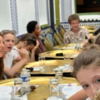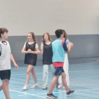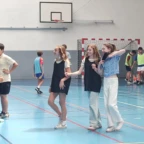 This morning we arrived at the school where our host mom Marie works and we went to our first class, which was English. All the kids asked us lots of questions including” do you guys eat cats and dogs?”. Then we headed to math class and I was surprised to know that the stuff they were learning we learned last year. The partner I was assigned with for the next three classes was Alana. The kids were very nice and when me and Alana were in Math, all the kids crowded around us and asked us questions. The girls were so nice showering us with compliments. During the day, we did not speak much French because the children would use their best English to talk to us. Then me and Alana headed over to another English class where we did some interview worksheets. After that we went to lunch at the school, and there was ice cream for dessert! After the good lunch, we went to a social studies class and then met up with the rest of the group to help set up bird and bat houses. Our host mom drove us home from school. We were very tired so we relaxed before a delicious dinner which I am currently at right now.. Chris, our Global Works Leader joined us.