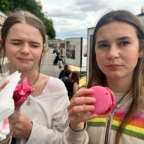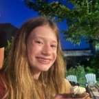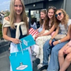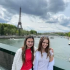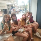 At dinner, we had bacon burgers, we each got 30 euros to put together our own dinners, so for dessert, we shared two crème brûlées & 2 crèpes with Harper & Ainsley. On the Eiffel Tower’s mid level, Chris, our group leader, with Ms. Jordan and Mme Menard, got us ice cream. Lila got mango and Pip got vanilla. Today was amazing, we loved it so much!