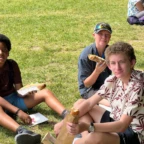 We had an early start yesterday with an 8am breakfast and some chaotic packing. We then headed out to our first train of the day that lasted 6 hours due to a delay. After that one we had a little chaotic change of trains which lasted one hour. After that, a quick change of and 30min bus ride at Carcassonne which took us to the lake there. We arrived in Carcassonne at Lac de la Cavayère where we began to meet and greet with our host family parents, brothers and sisters. After we met our host families we had a delicious Potluck full of socializing. After that we headed to our host families’ houses for a fun night.