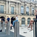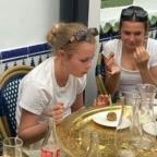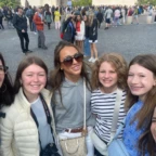 We then strolled to the Louvre and took amazing pictures at the pyramid and continued onto Palais Royal where we climbed on white and black columns of Buren (see pictures). We jumped back on the metro to Hotêl de Ville and waited a while to go inside Notre Dame, which was so pretty. Then it was time for a little Cafe stop with nice drinks and cookies. Our final stop for the evening was Montmartre, where we shopped with our friends for souvenirs for our families. Then we went to dinner at Le Relais Gascon which had giant salads.