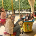 Today was very long and adventurous. We did many activities and saw many things! First we hopped on Metro M1 to Chaussée D’Antin to go to Jelly Cat @ FAO Schwartz, which was the best part because there were so many cute Jellycats. Some of us visited a Cafe in Galleries Lafayettes as well and the boys went shopping in H&M before the store opened. After that we made our way to Les Jardins Tuileries and an outdoor Cafe there surrounded by statues and fountains. We had sandwiches and talked with our new friends. Then, Ms. Jordan invited us on a carousel ride and we got giant pink cotton candy known as beard a papa, Papa’s beard.